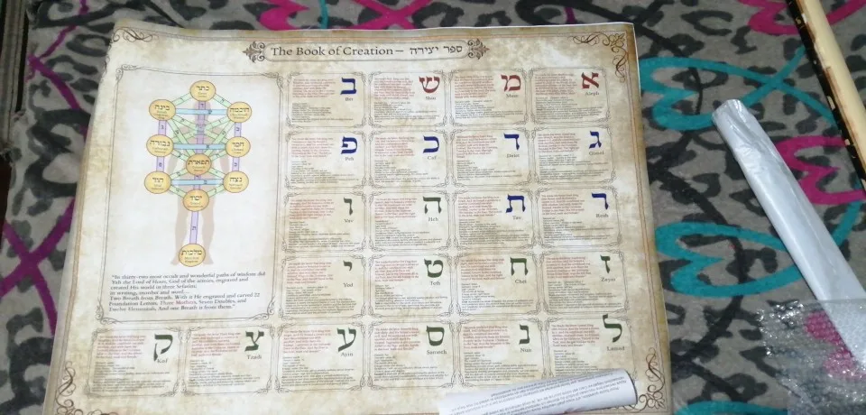 Sefer Yetzirah, книга творчества, печать, иврит, алфавит, ВИНТАЖНЫЙ ПЛАКАТ, ретро, Настенная картина, холст, живопись, домашний декор