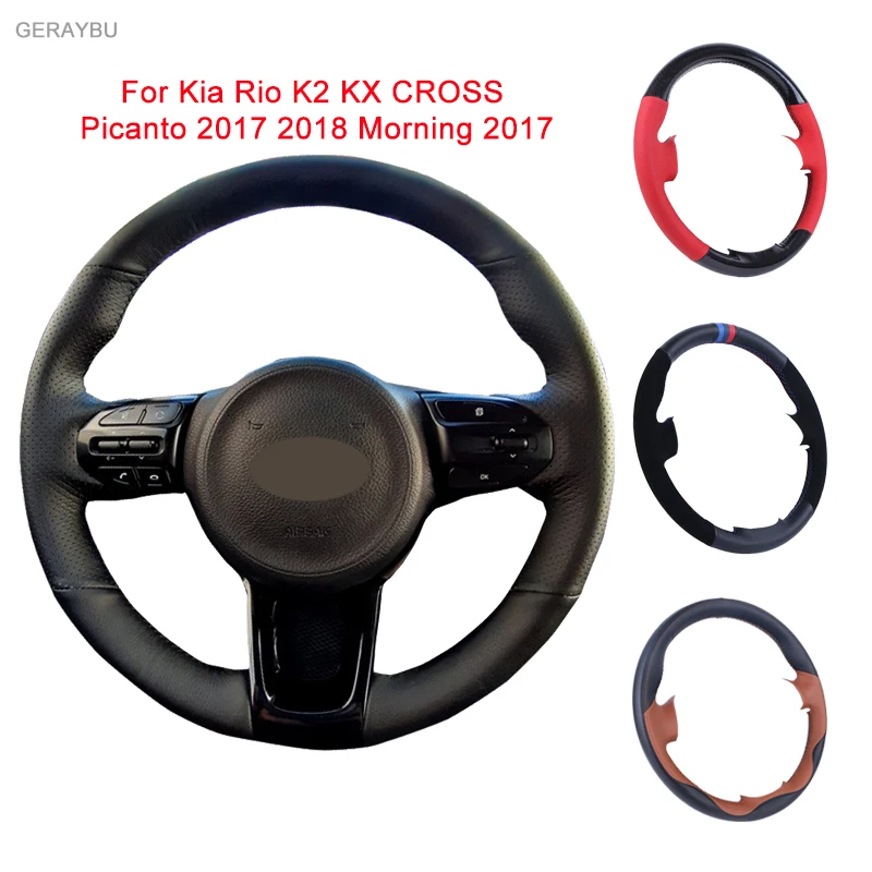 GERAYBU изготовленный на заказ DIY черный кожаный сшитый вручную чехол рулевого колеса автомобиля для Kia Rio K2 KX CROSS Picanto 2017 2018 Morning 2017