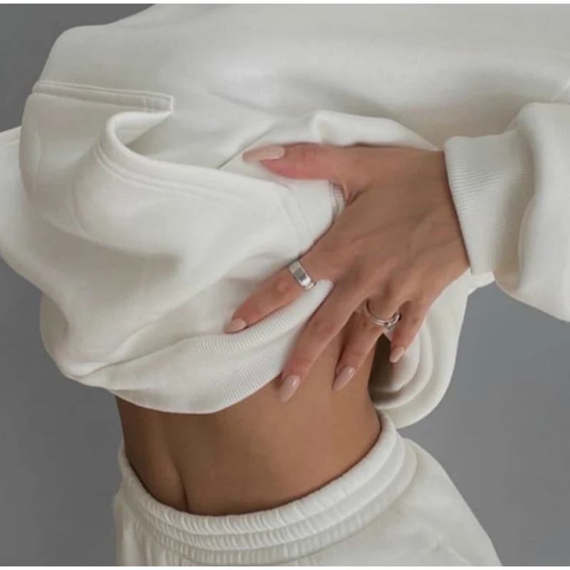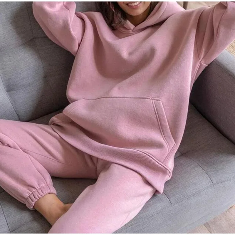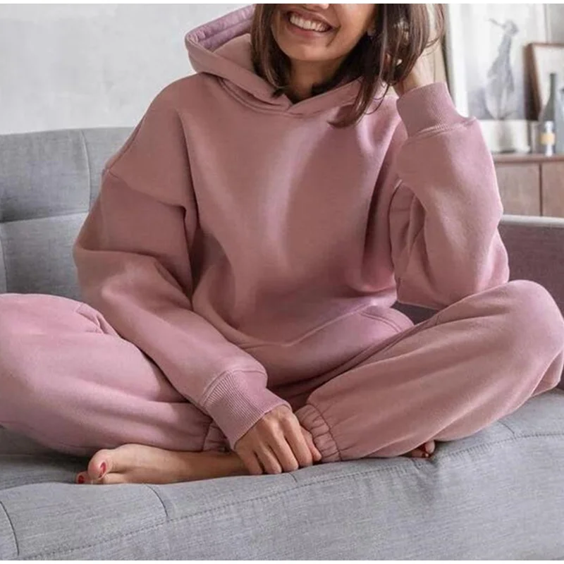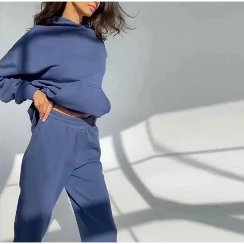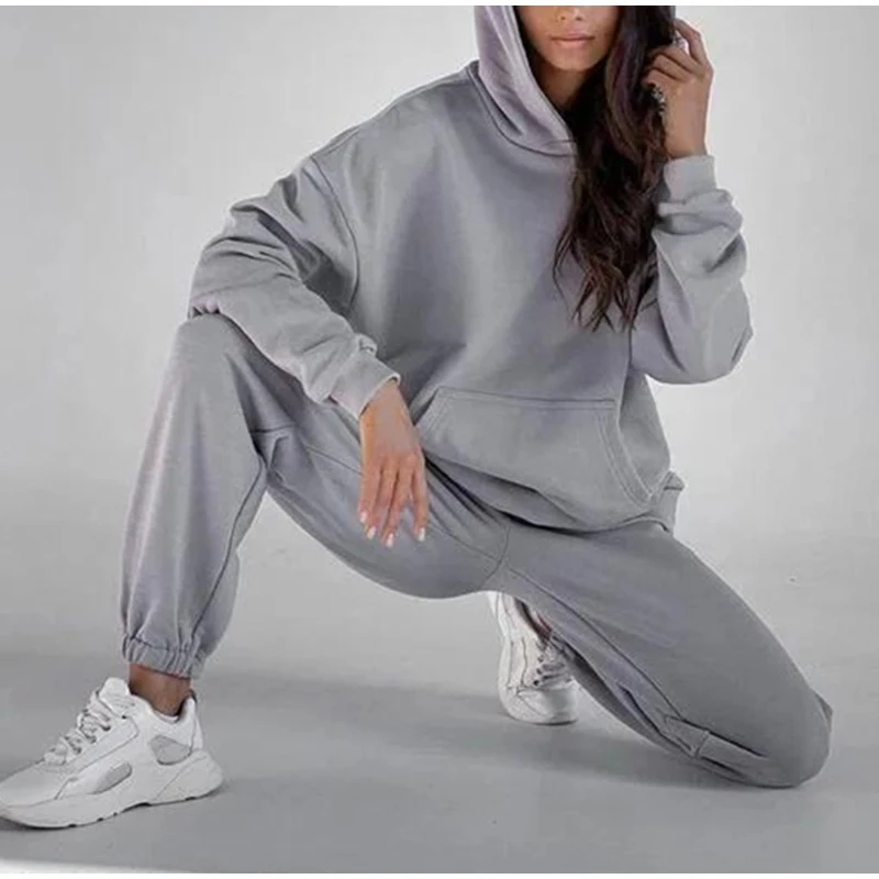 Флисовый однотонный комплект с толстовкой и брюками для женщин, осень 2021, пуловеры с передним карманом, длинные брюки, костюмы, женский Повседневный модный спортивный костюм
