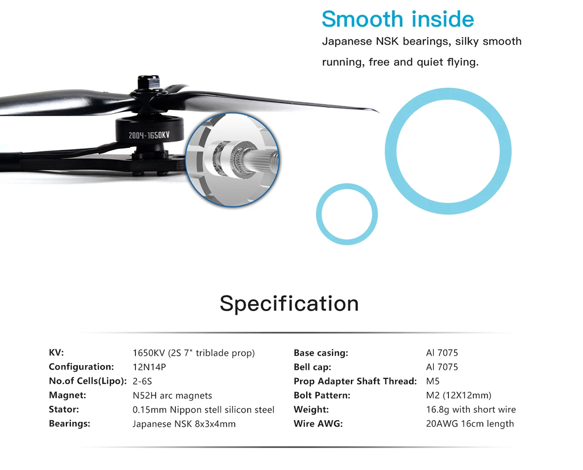 BrotherHobby LR 2004 1650KV бесщеточный мотор 2-6S для Quaccopter Racing Droen Long Range