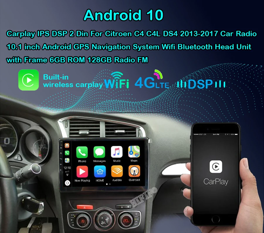 Автомагнитола для Citroen C4 C4L DS4 2013-2017, 10,1 дюйма, Android, GPS-навигационная система, Wi-Fi, Bluetooth, головное устройство с рамкой для Carplay