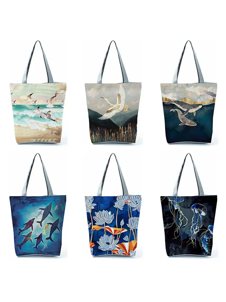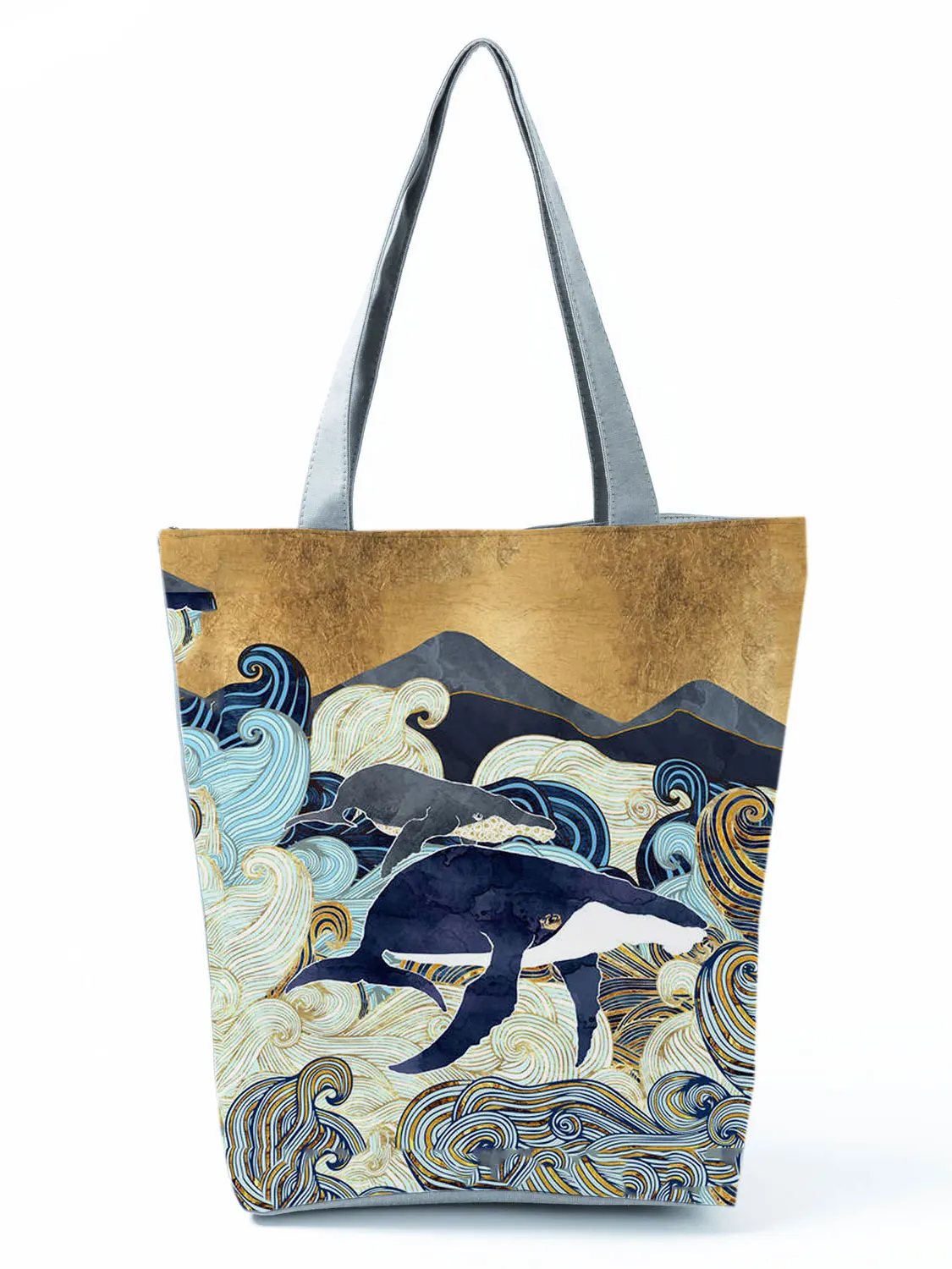 Tengyun/сумки на плечо с рисунком Кита, универсальные женские сумки с пейзажами, японские дизайнерские сумки Ukiyoe, вместительная сумка для покупок