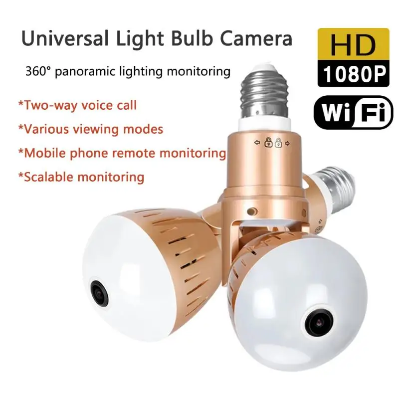 Панорамная камера с лампочкой 1080P, Wi-Fi, 2 МП, 360 дюйма, Панорамное ночное видение, двустороннее аудио, для домашней безопасности, видеонаблюдение, лампа рыбий глаз, камеры