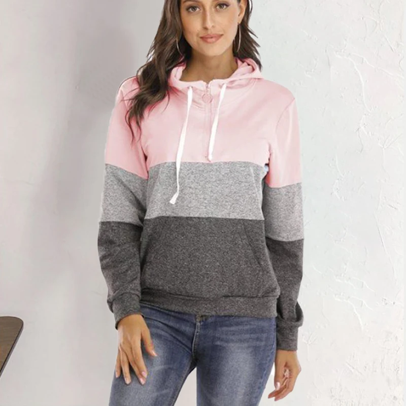 Женская толстовка контрастных цветов с капюшоном на шнуровке, 2021