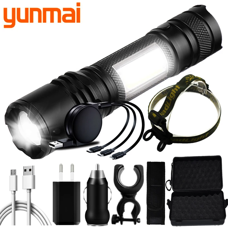XHP50.2 светодиодный фонарик со встроенным аккумулятором 18650 Usb, масштабируемый фонарик с внешним аккумулятором, налобный фонарь, жестсветильник фонарь yunmai
