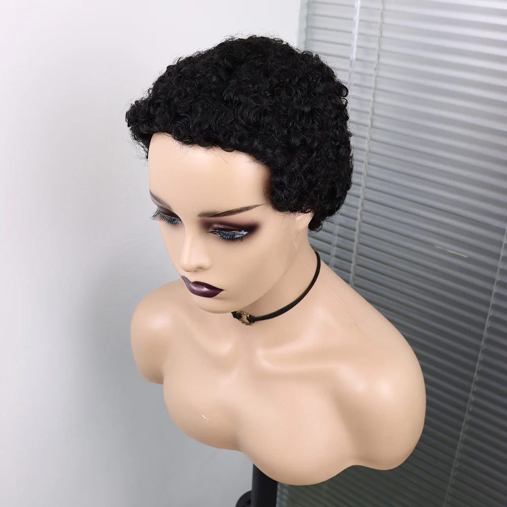 Короткие вьющиеся волосы парики бразильские человеческие волосы для черных женщин 150% Плотность безклеевые афро кудрявые вьющиеся парики