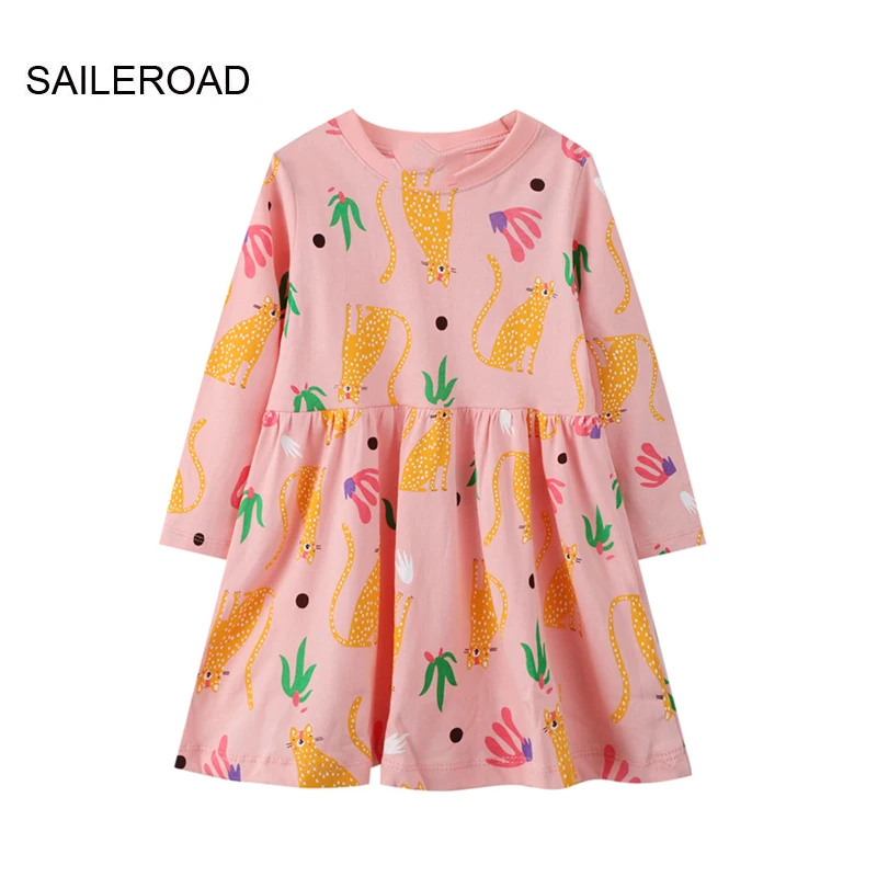 SAILEROAD/Новый дизайн; Платья для девочек с розовыми кошками; Сезон осень; 2021 хлопок; Детская одежда с длинными рукавами; Детские вечерние платья