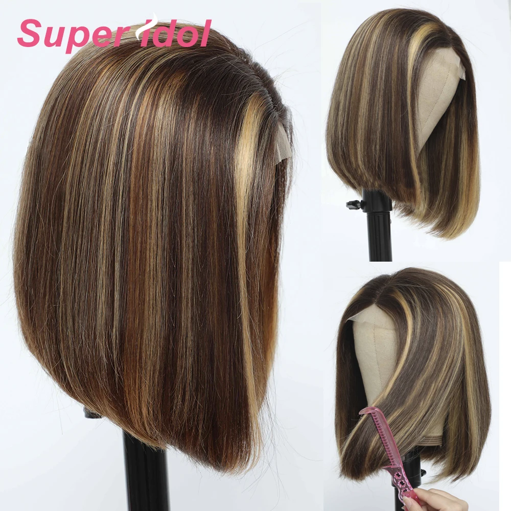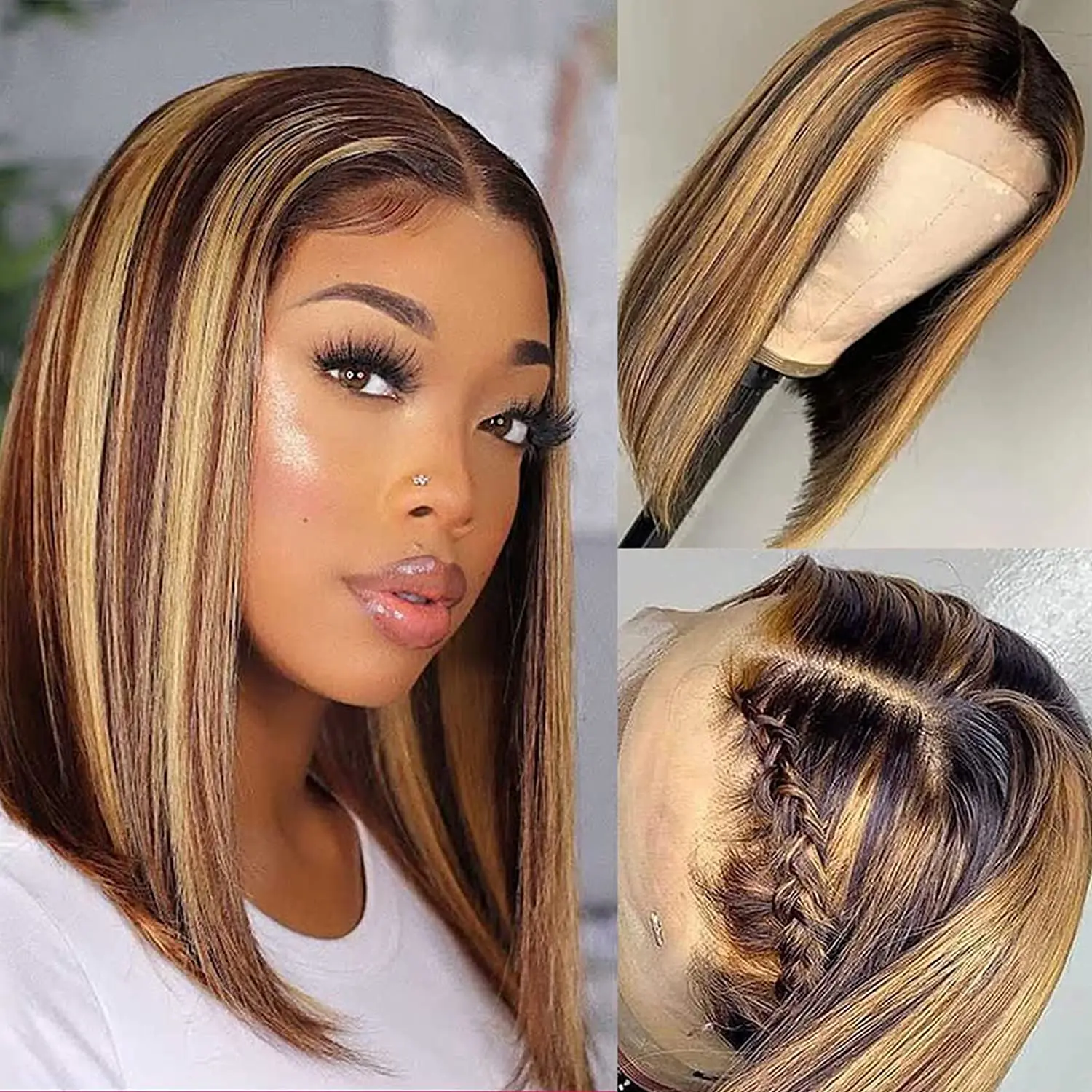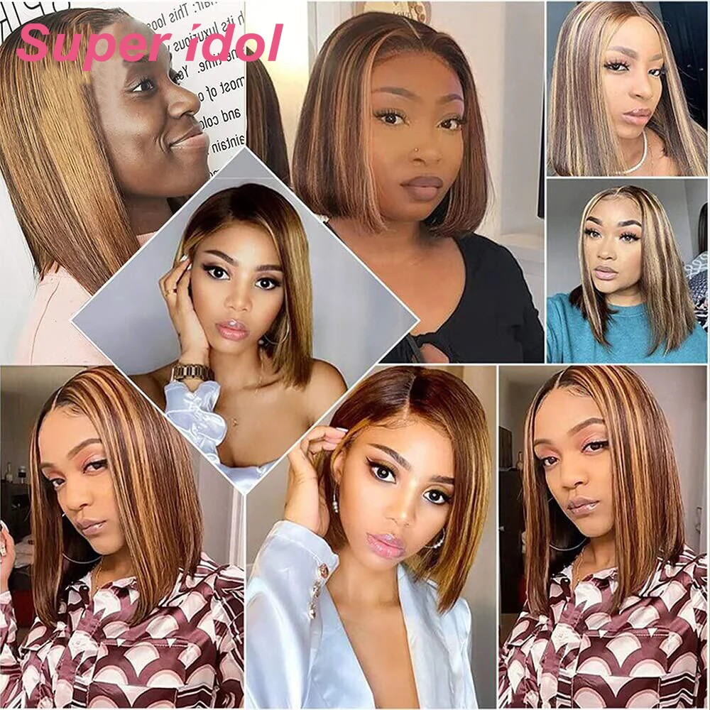 Парик хайлайтер Боб, человеческие волосы, бразильский парик с Омбре на сетке, парик из натуральных волос 4x1 T, короткий парик из человеческих волос Боб для черных женщин