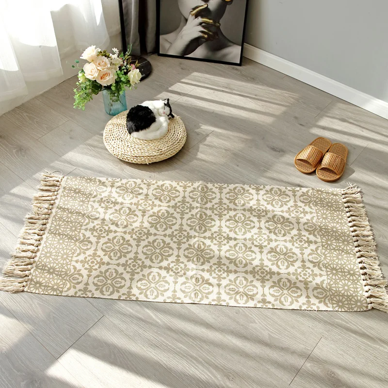 Простой хлопковый льняной ретро-ковер в богемном стиле с кисточками...
