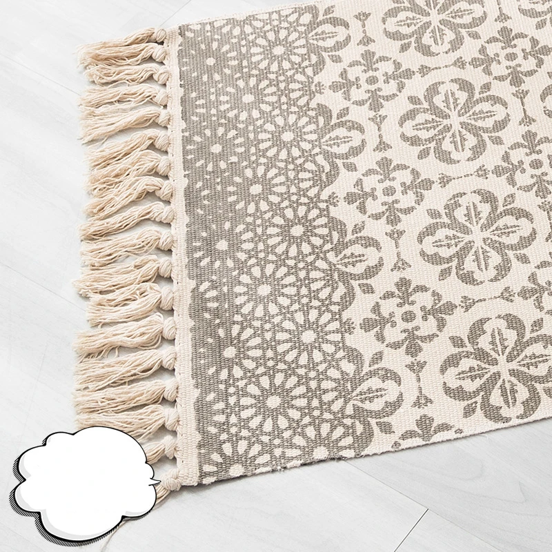 Простой коврик из хлопка и льна в богемном стиле с кисточками в этн...