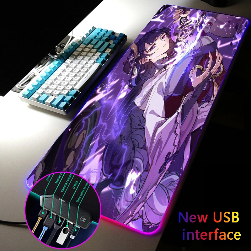 Игровой коврик для мыши с аниме девушкой Baal Genshin Impact RGB, большой размер, игровой коврик для мыши со светодиодной подсветкой и 4 портами, компьютерный коврик для мыши, Настольный коврик для мыши для Csgo