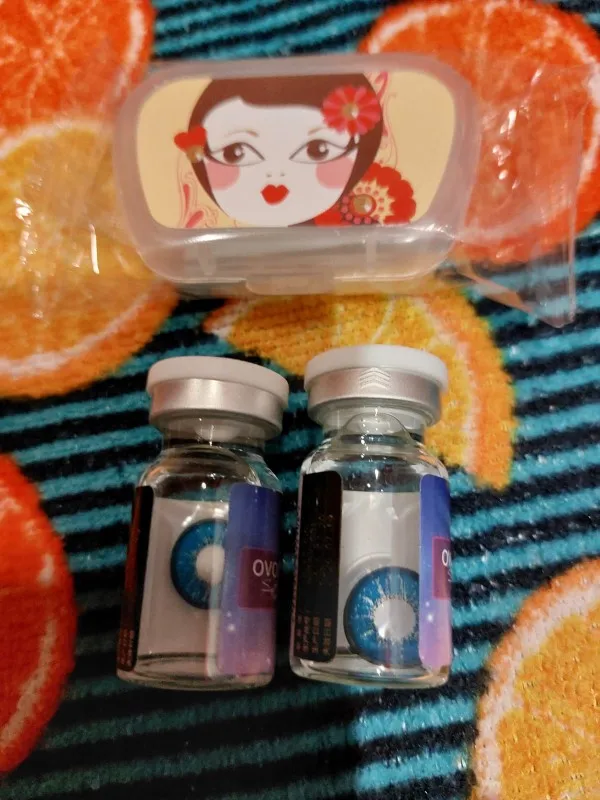 Никогда бы не подумала, что мне голубой цвет глаз будет к лицу. От природы у меня зелёные глаза. Линзы из этого магазина ярко-голубые. Упакованы во флаконы с жидкостью и пластиковый контейнер. В комплекте футляр для линз и специальные щипчики, чтобы линзы не трогать пальцами и не пачкать. Это профессиональный подход, так как намного снижается риск занести инфекцию в глаза. На моих глазах цвет смотрится интересно. Однозначно рекомендую!