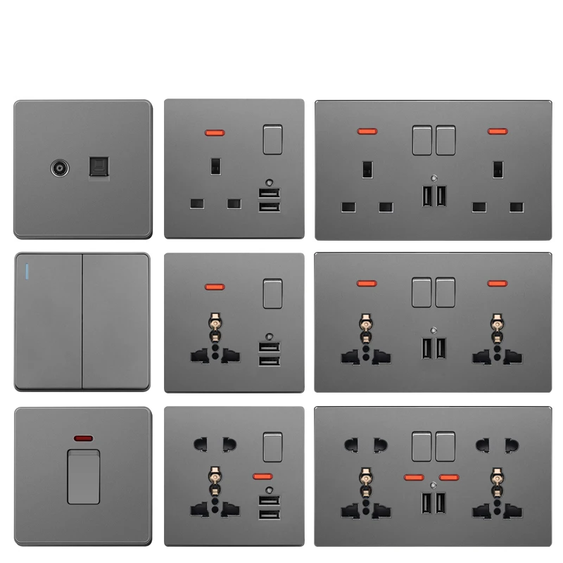 Rewnssin для компьютера, ТВ, телефона, спутниковая антенна RJ45, разъем для передачи данных, серебристая пластиковая панель, 250 В, розетка переключателя