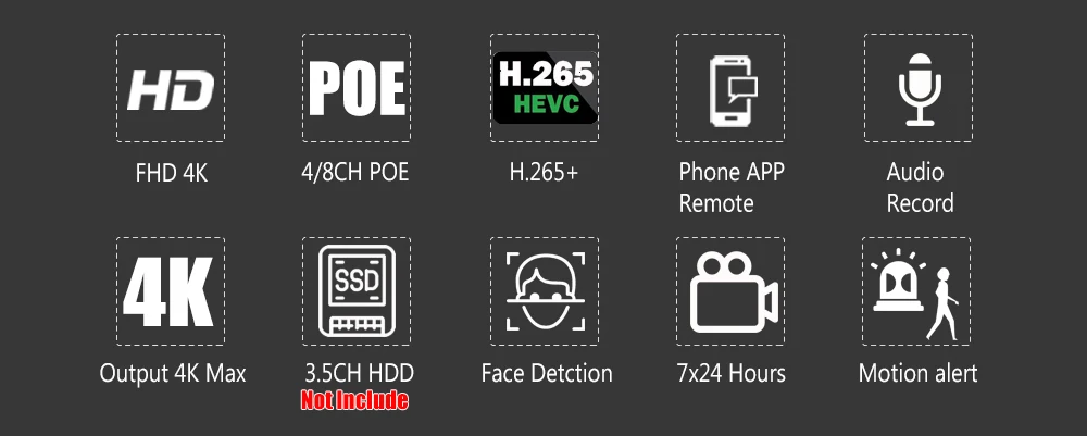 1. Адаптация усовершенствованного сжатия H.265, передача видео высокого качества и сохранение памяти2. 8MP/4K/5MP/4MP/3MP ip-камера видео вход;3. Поддержка выхода VGA и HD;Пожалуйста, подтвердите с продавцом, если вы хотите использовать ip-камеру других брендов.5. Поддержка веб, CMS, программного обеспечения для управления платформой XMYEye;6. Обнаружение движения, поддержка записи будильника, push-сигнал на электронную почту или FTP7. P2P, Легкий Удаленный доступ через ПК, iPhone,Android смарт-устройств.