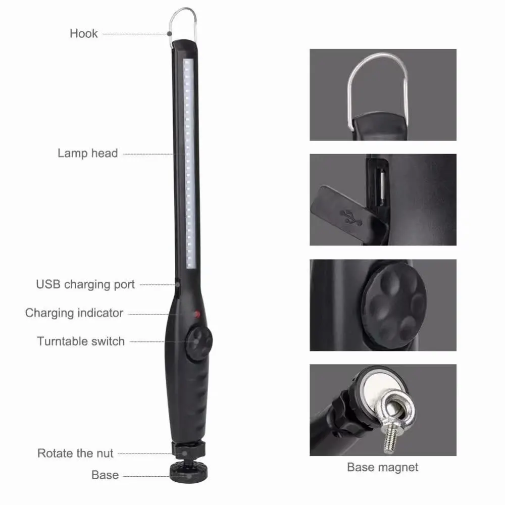 COB светодиодный рабочий свет фонафонарь с USB-подзарядкой, Светоди...