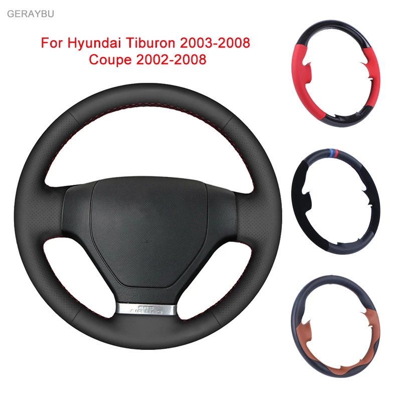 GERAYBU изготовленный на заказ DIY черный чехол рулевого колеса автомобиля ручной работы из искусственной кожи для Hyundai Tiburon 2003-2008 Coupe 2002-2008