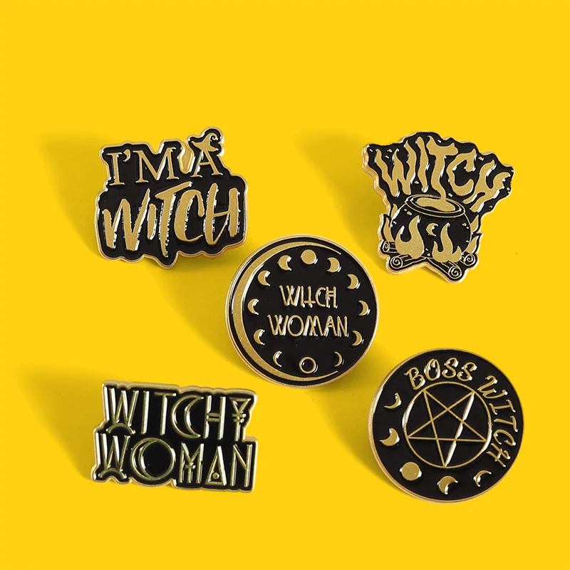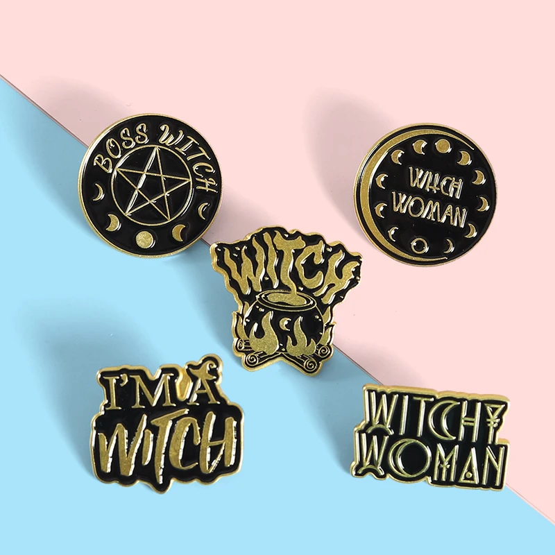 Броши с надписью темный черный огонь ведьма женщина эмалевые булавк...