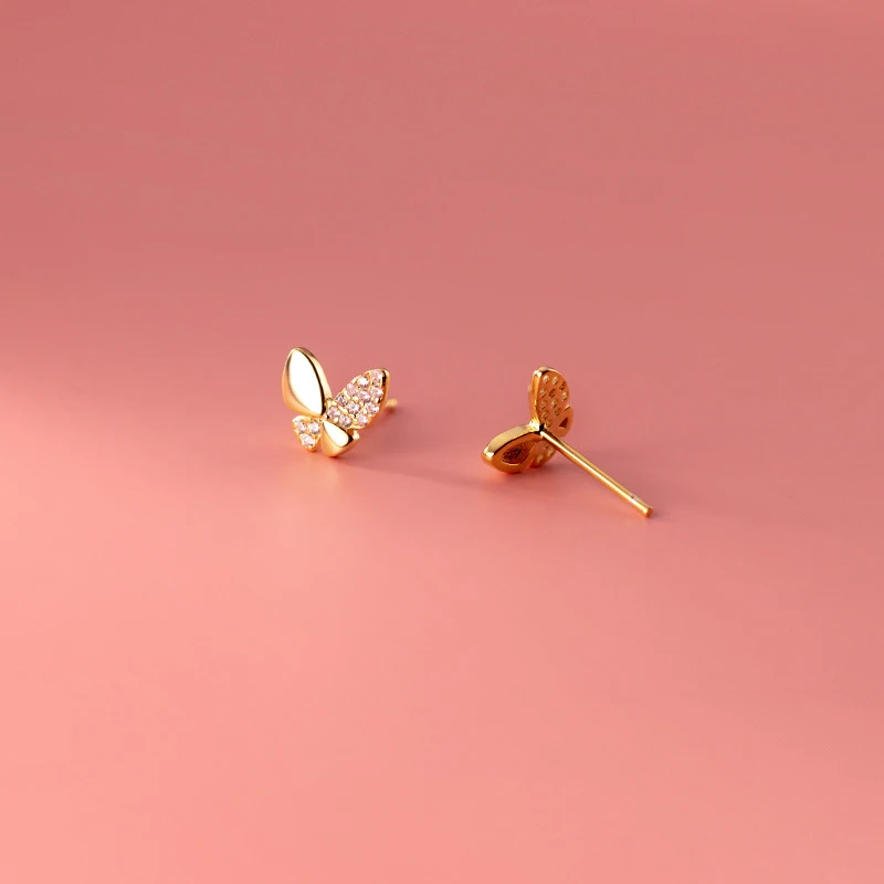 Серьги-гвоздики женские из серебра 925 пробы с бабочками и фианитами