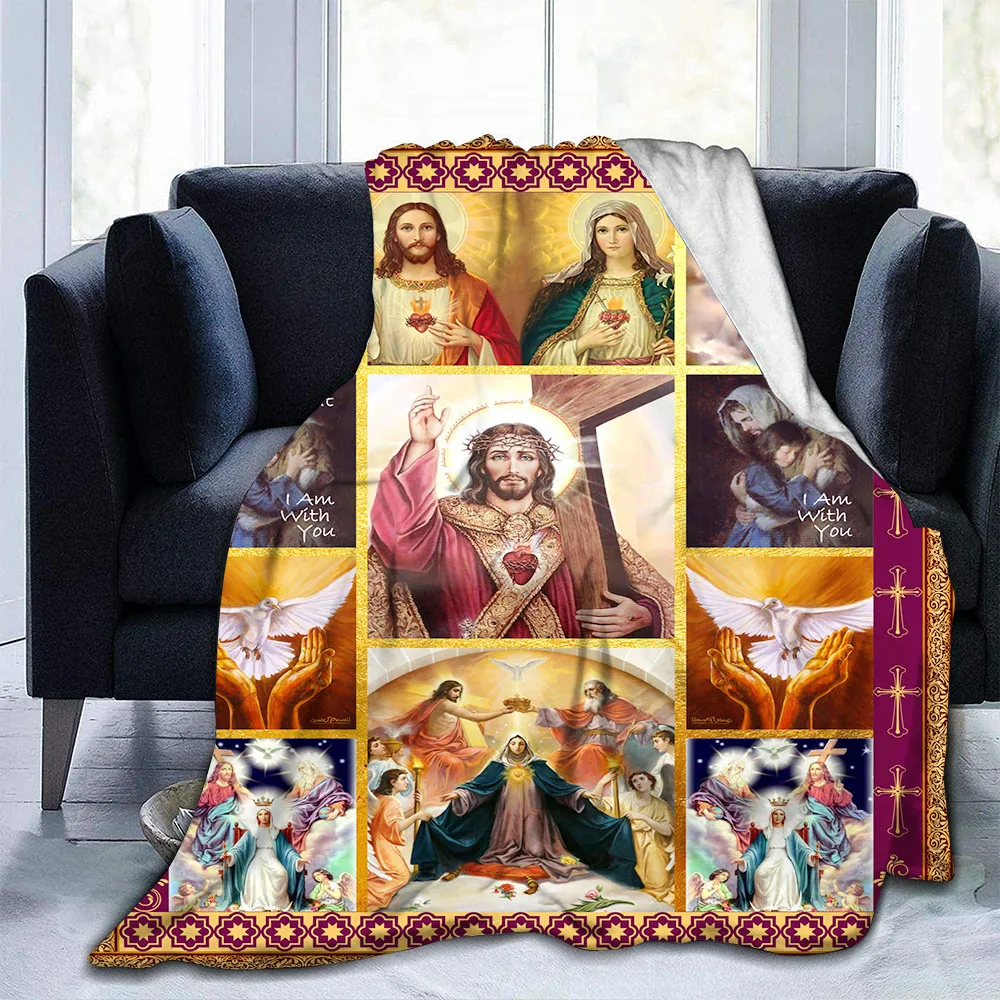 Фланелевое Одеяло с Иисусом, пушистое, легкое Флисовое одеяло, мягк...