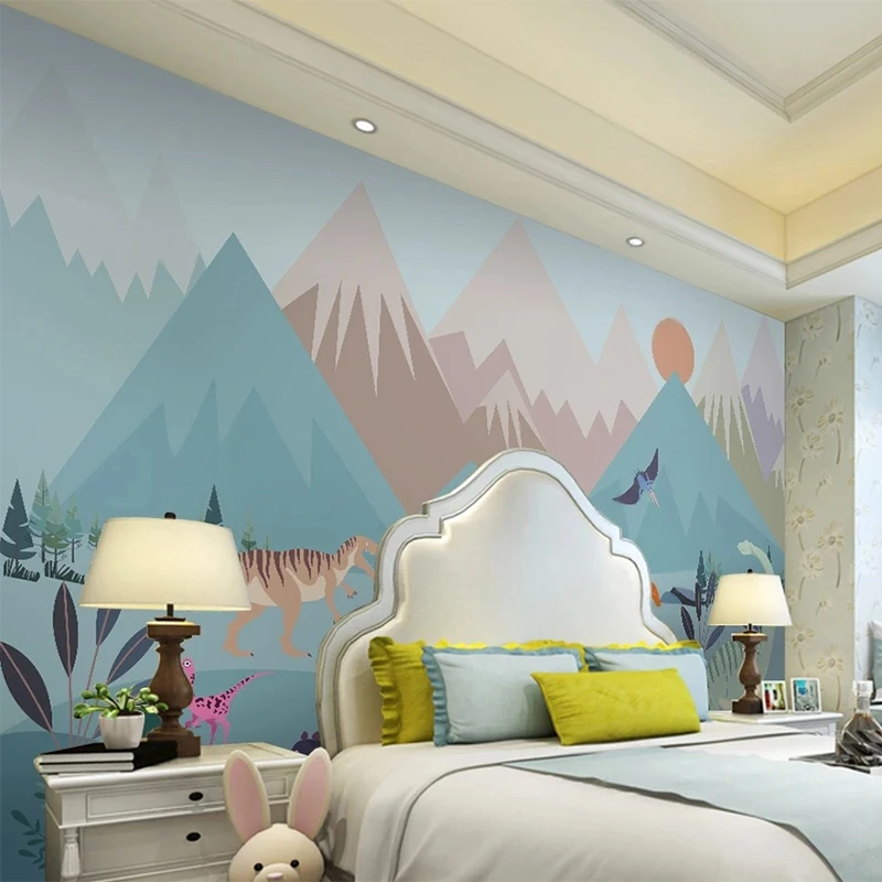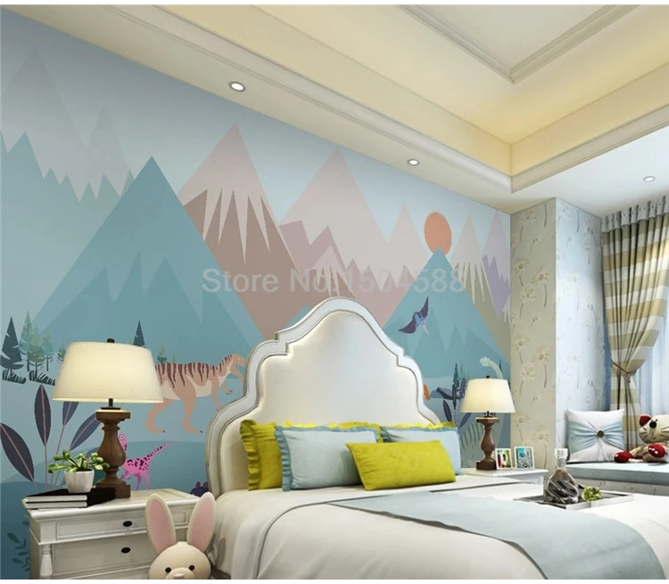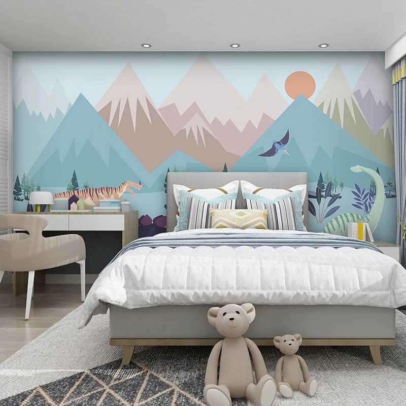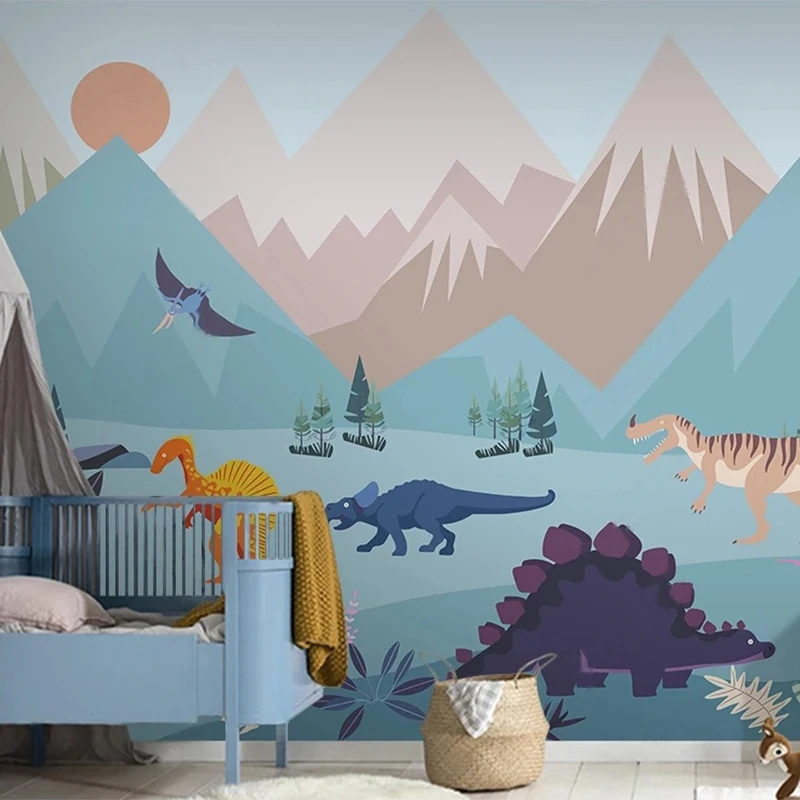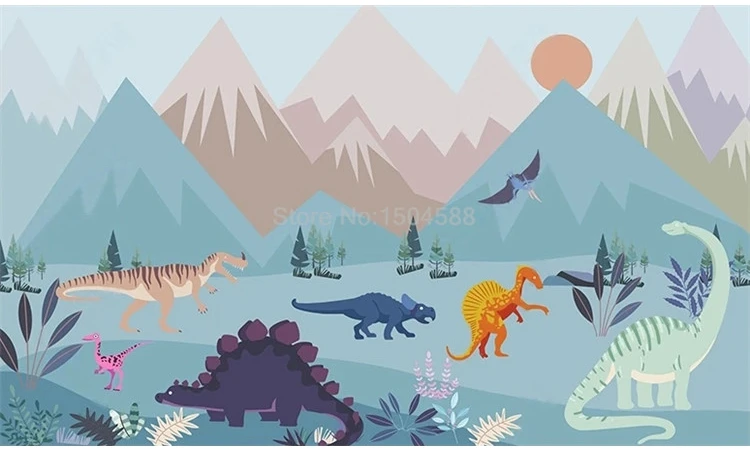 3D настенная роспись на заказ, динозавр, мир, мультфильм, животные, снег, горы, пейзаж, фон для детской комнаты, Настенная роспись, Papel De Parede