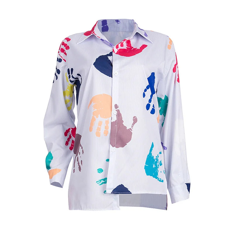 Женское асимметричное платье-рубашка Thorn Tree, модное яркое однобортное летнее Клубное платье с длинным рукавом и принтом рук, сексуальное короткое платье