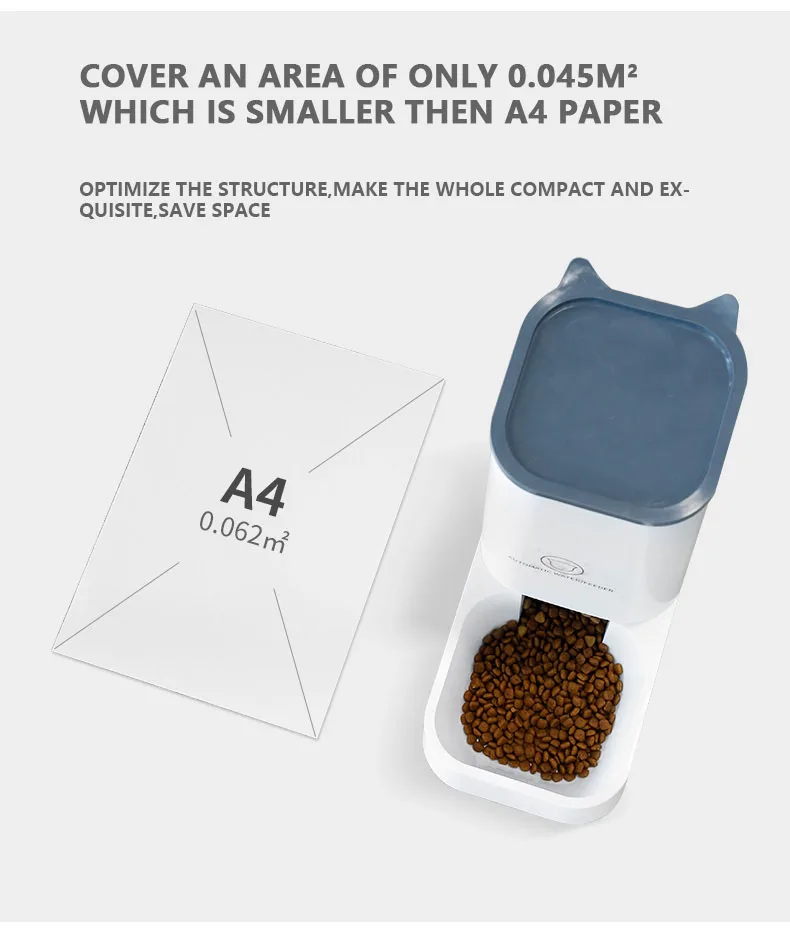 Предназначен для домашних животных, является более изысканным и компактным, чем когда-либо, покрывая площадь 0,045 м ватт 2; Меньше, чем бумага формата А4, но все-таки магазинах 3.8L воды/2,1 кг домашнего животного сухих продуктов.