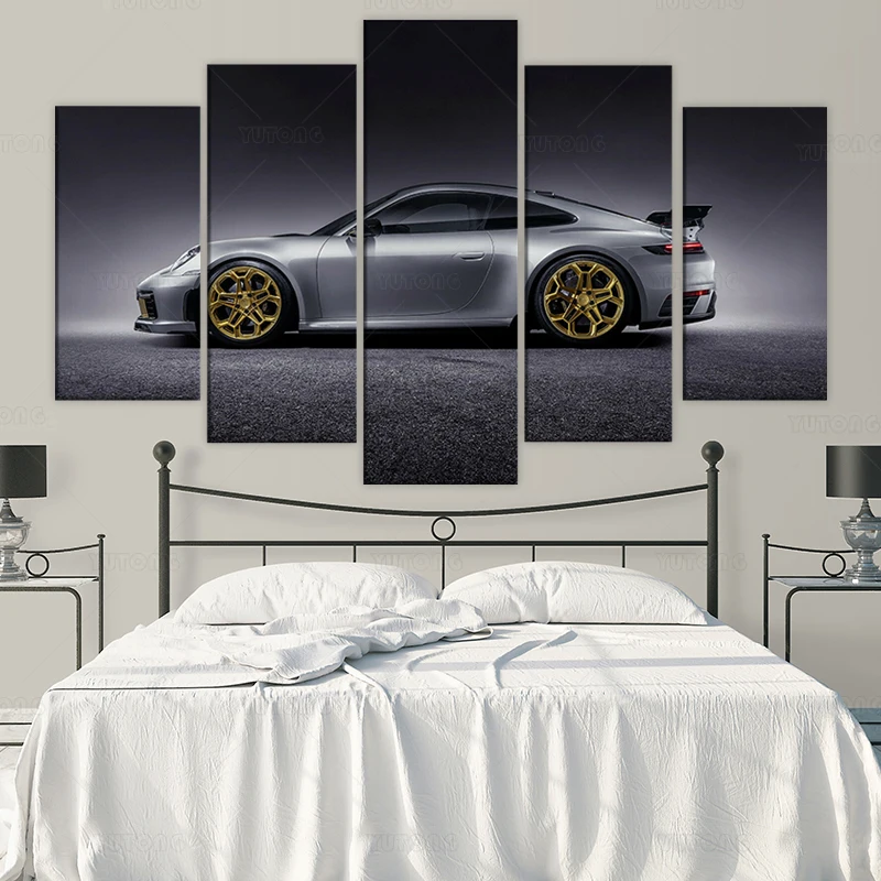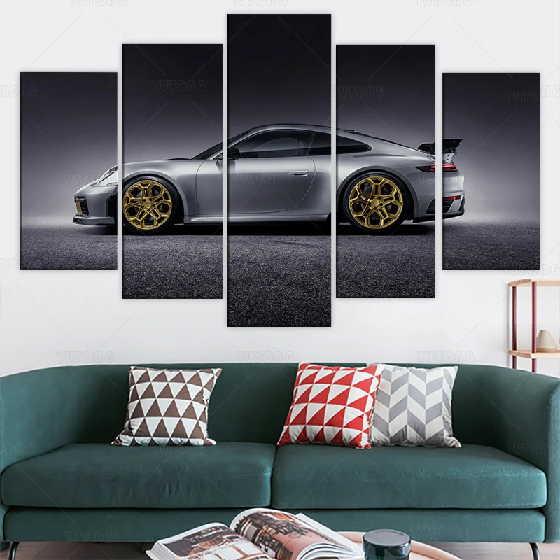 Порше карбера 911 серый автомобиль 5 шт. холст настенный плакат печать домашний декор HD картины 5 панелей без рамки картины