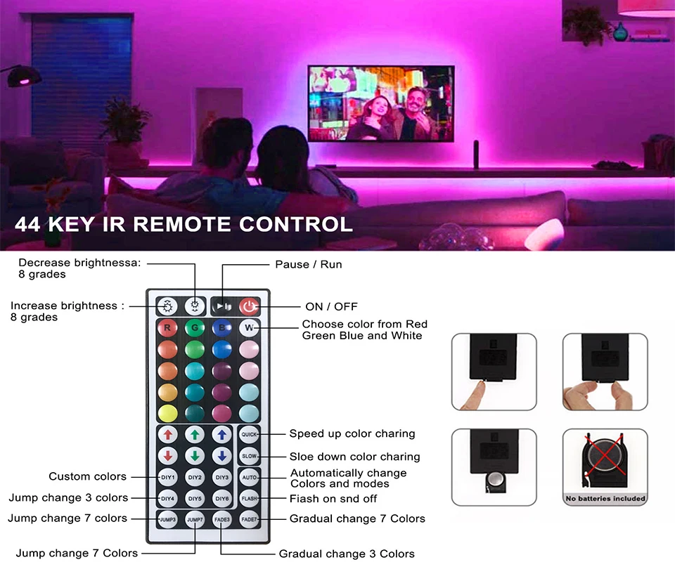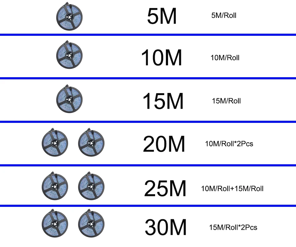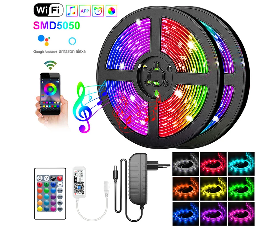 Высокая интенсивность и надежностьНизкое энергопотребление Супер-яркий, но работает при низкой температуреВсе светильник распространился и полностью ровныйСрок службы 5000 часовИК-пульт может удалять только расстояние 5 м, но пульт wifi может удалять любое расстояние, которое вам нужно, вы можете управлять им с помощью приложения для смартфонаПосылка включает:Полный комплект 50505 м = 1*5 м/рулон + 1 * ИК/wifi Пульт дистанционного управления (без батареи) + 1 * Адаптер питания DC12V10 м = 1*10 м/рулон + 1 * ИК/wifi Пульт дистанционного управления (без батареи) + 1 * Адаптер питания DC12V15 м = 1*15 м/рулон + 1 * ИК/wifi Пульт дистанционного управления (без батареи) + 1 * Адаптер питания DC12V20 м = 2*10 м/рулон + 1 * ИК/wifi Пульт дистанционного управления (без батареи) + 1 * Адаптер питания DC12V25 м = 1*10 м/рулон + 1*15 м/рулон + 1 * ИК/wifi Пульт дистанционного управления (без батареи) + 1 * Адаптер питания DC12V30m = 2*15M/rol + 1 * IR/wifi Пульт дистанционного управления (без батареи) + 1 * Адаптер питания DC12V
