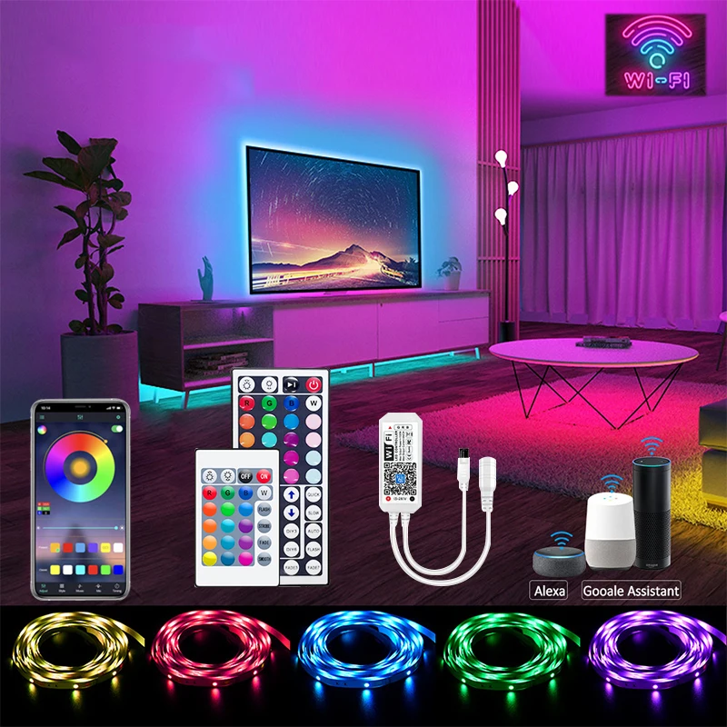 Светодиодная лента Alexa, 5 м, 15 м, 24 клавиши, управление на 44 клавиши, Wi-Fi светодиодный Светодиодная лента для декора ТВ, спальни, Rgb светодиодный ная лента 5050, светодиодная вилка USEUAUUK
