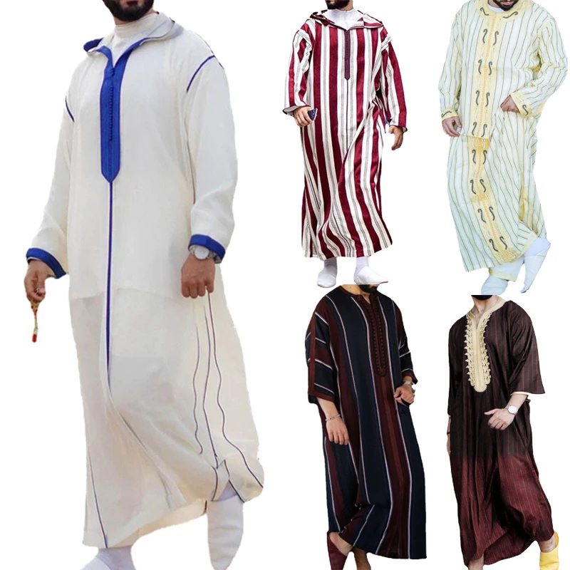 Мусульманская одежда Jubba Thobe Мужская толстовка Рамадан халат Кафтан Абая Дубай Турция Исламская одежда мужская повседневное свободное платье