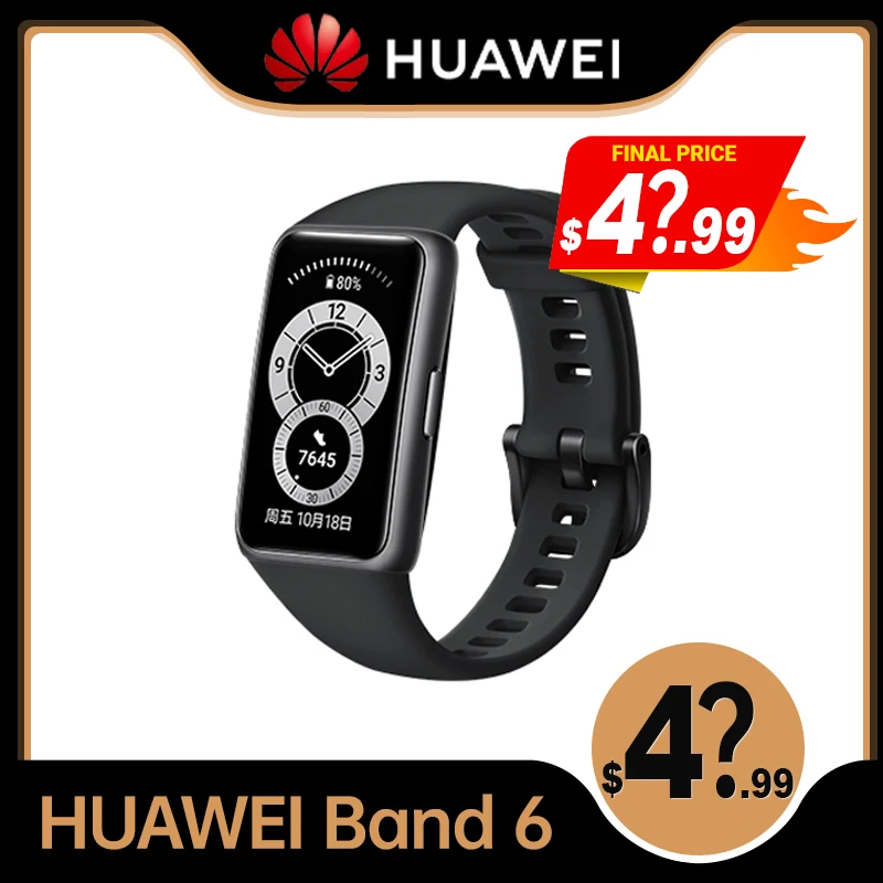 Оригинальный Смарт-браслет Huawei Band 6, SpO2, кислородный, пульсометр, дисплей с полным обзором, мониторинг жизни, мониторинг сна, BT 5,0, смарт-браслет