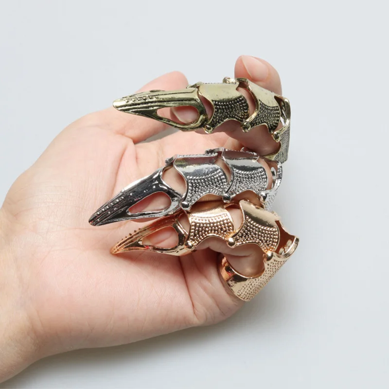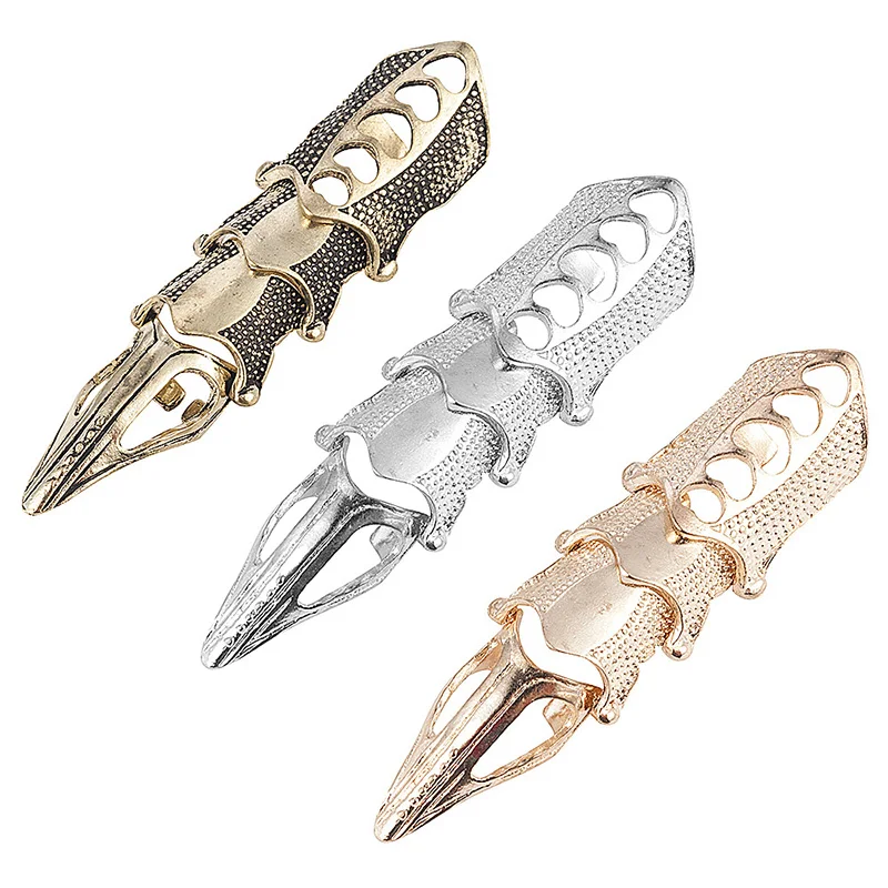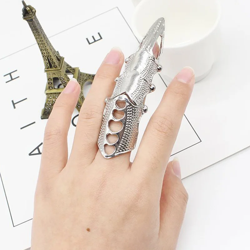type6European And American Fashion Cool Mmale Punk Gothic Rock Reel Joint Armor Knuckle Full Ring Gold Exaggerated Personality Ring