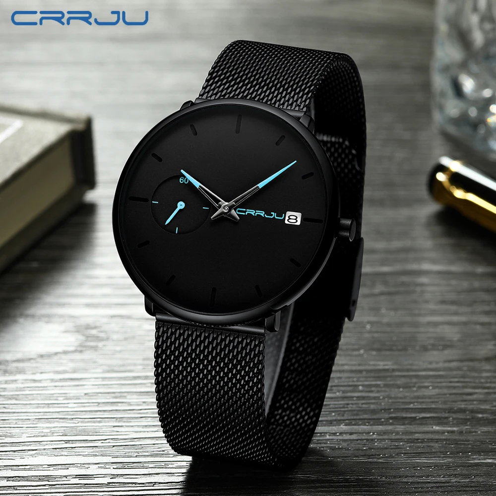 CRRJU модные часы, водонепроницаемые тонкие сетчатые браслеты, мини...
