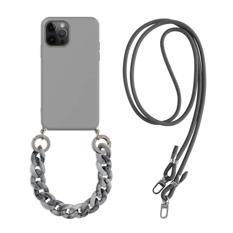 Модный чехол для телефона с мраморной цепочкой и ремешком через пле...
