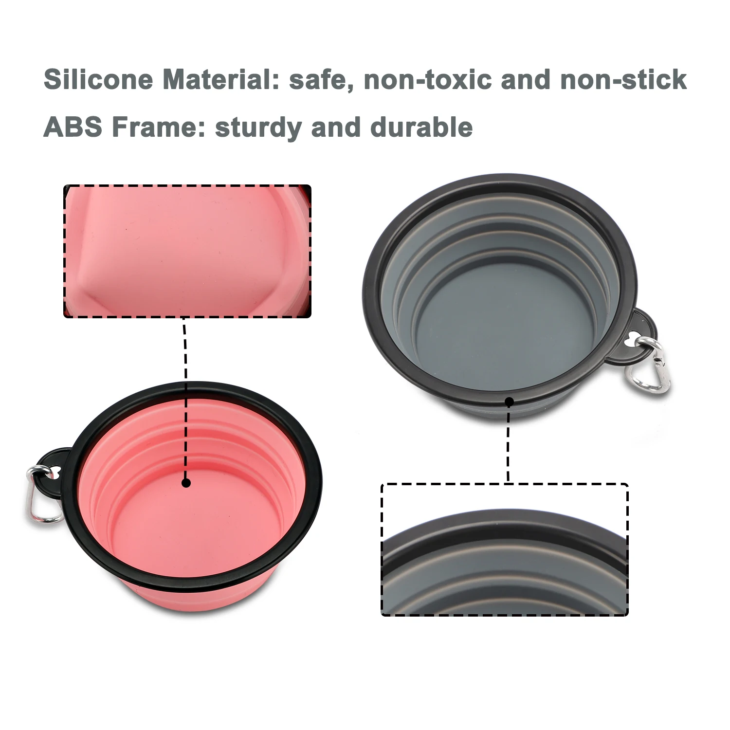 2-Pack складные миски для собак для путешествий портативная миска для воды для собак блюдо для путешествий Кемпинга прогулки с 2 карабиномОписание товара