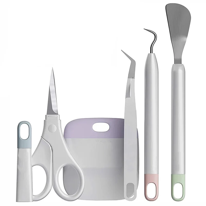Набор инструментов с шестью инструментами. Включает в себя: ножницы, пинцет, крючок, скребок, шпатель и шпатель стилус для использования с Cricut Explore ore и машины для изготовления.