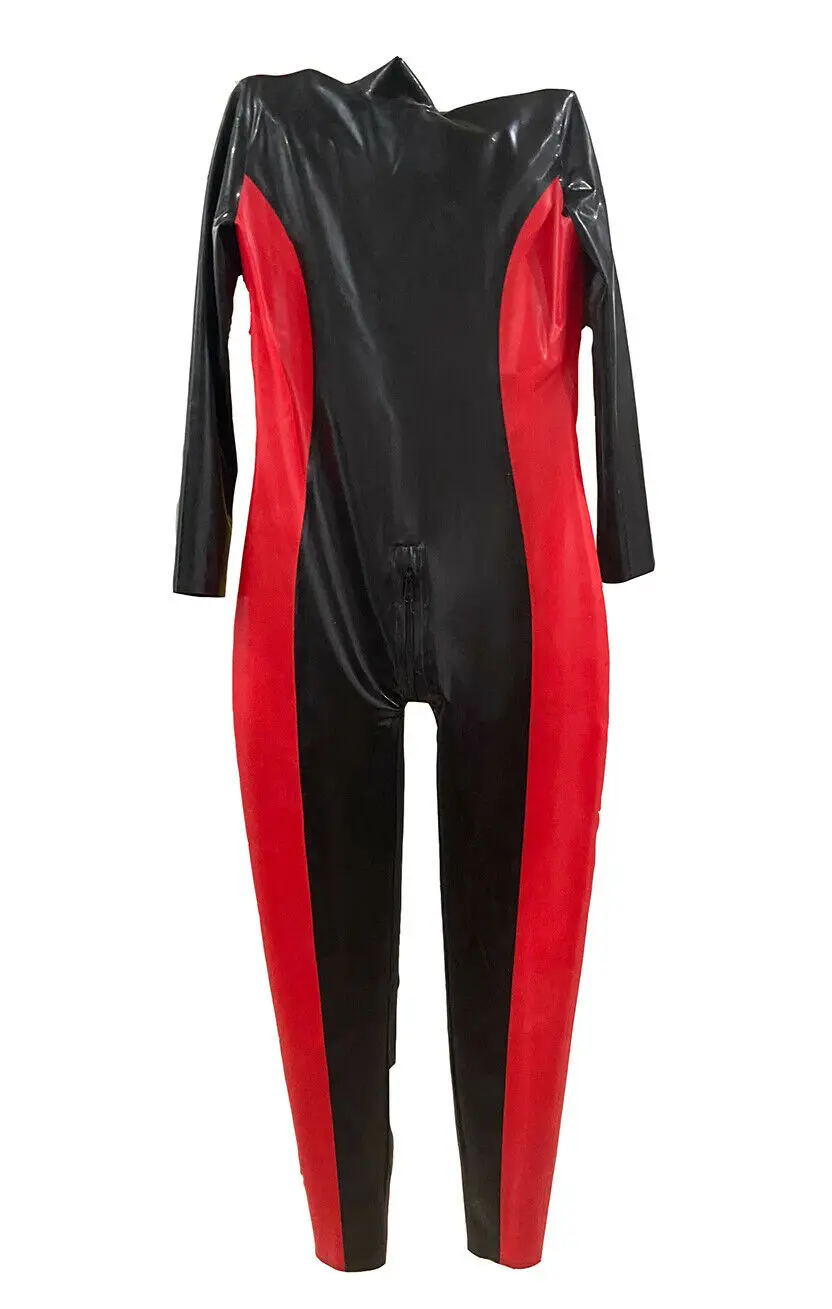 Латексный мужской спортивный облегающий костюм, Черное и красное Бо...