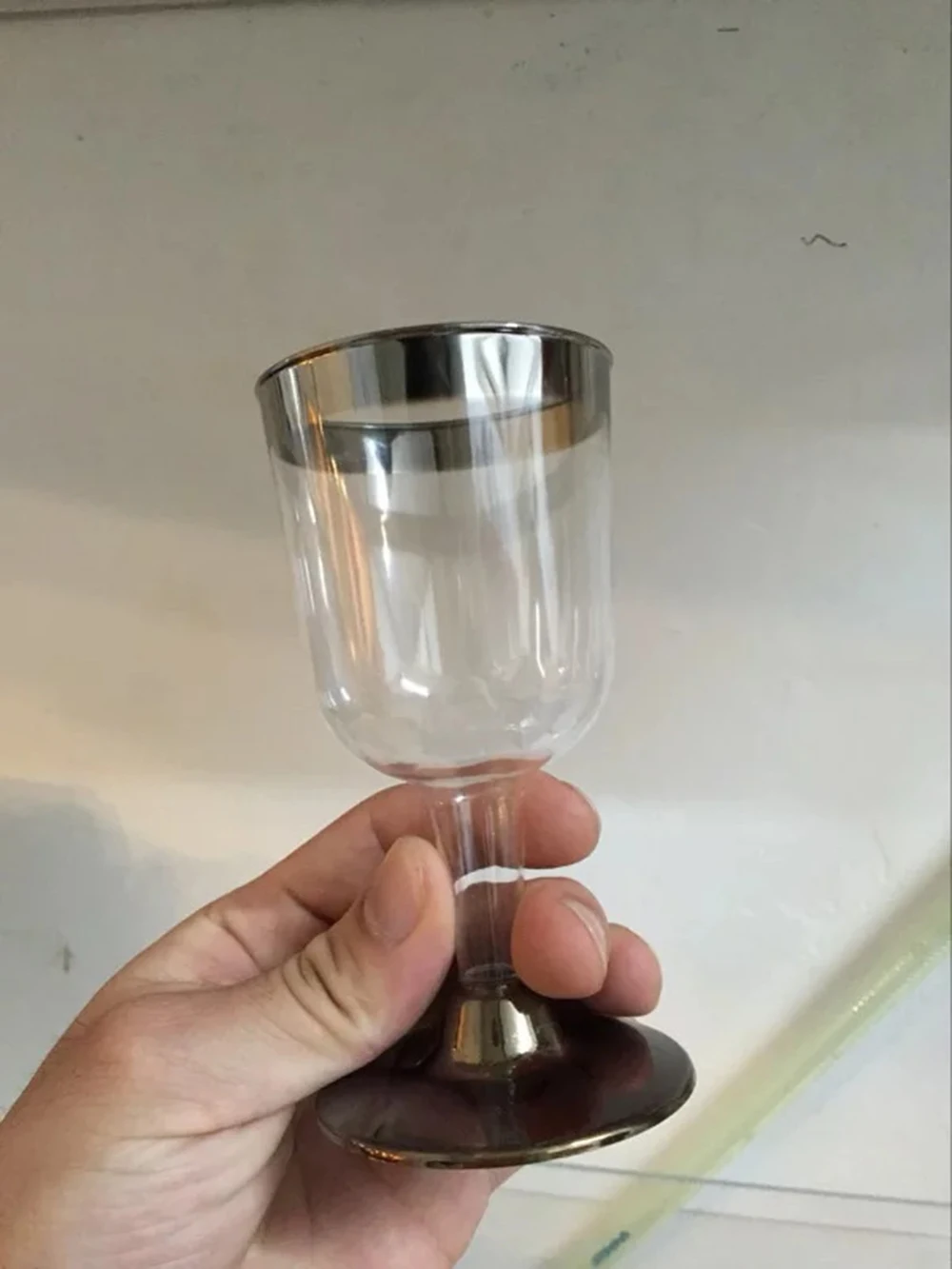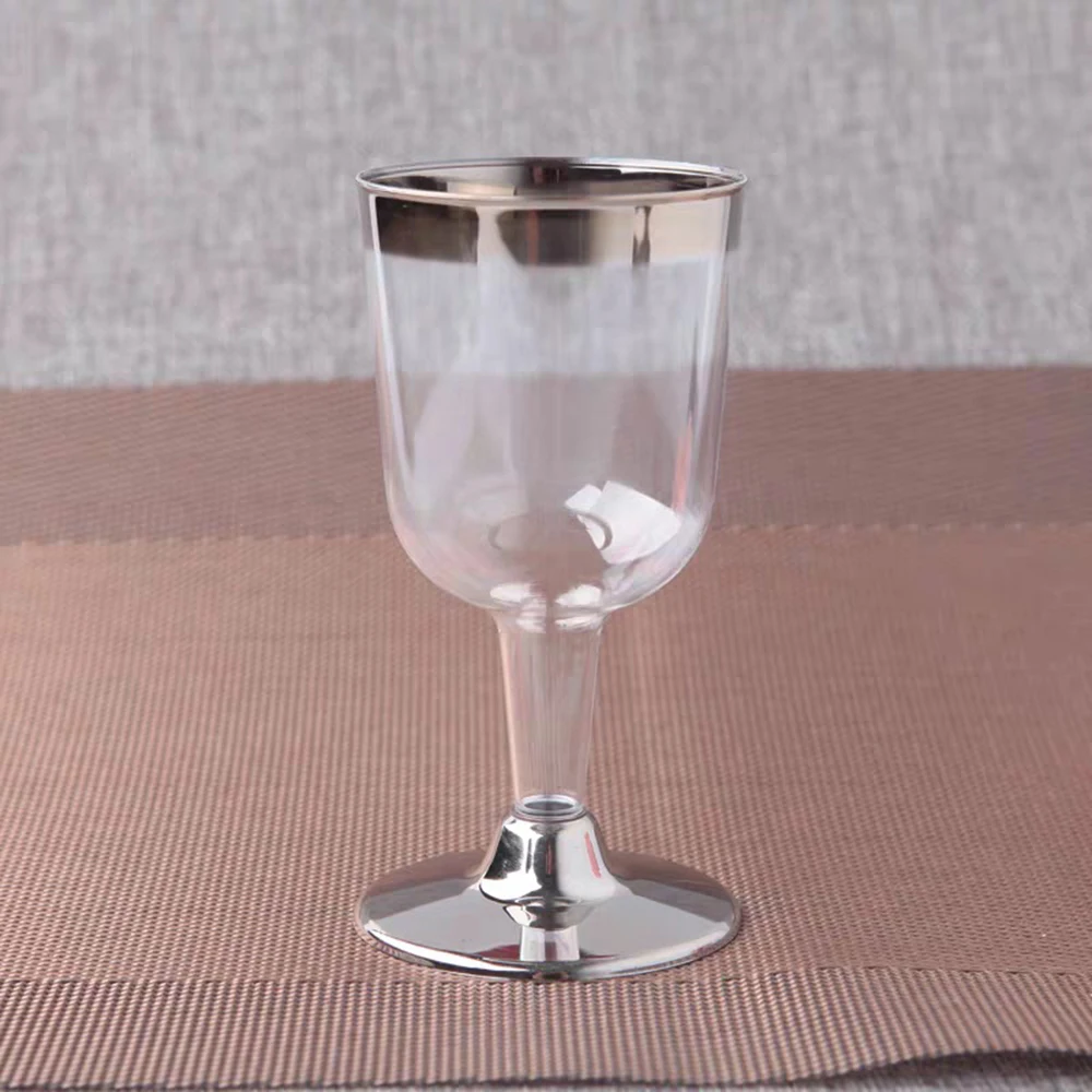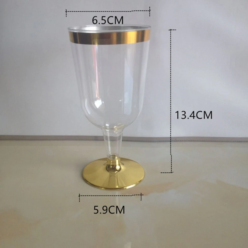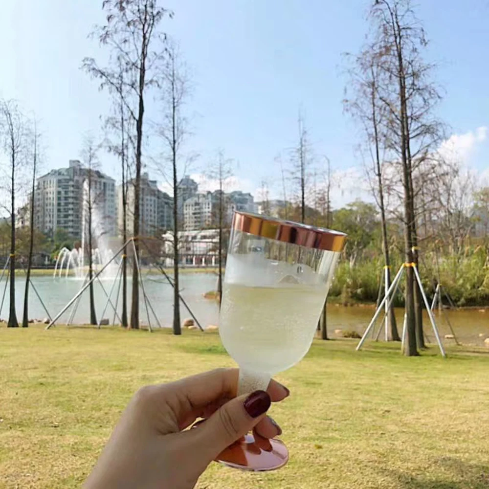 Стакан для красного вина цвета шампанского с золотой оправой, 6 шт., одноразовые чашки, пластиковые чашки для вечерние ринки, свадьбы, посуда, розовое золото, стакан для тостов, 180 мл