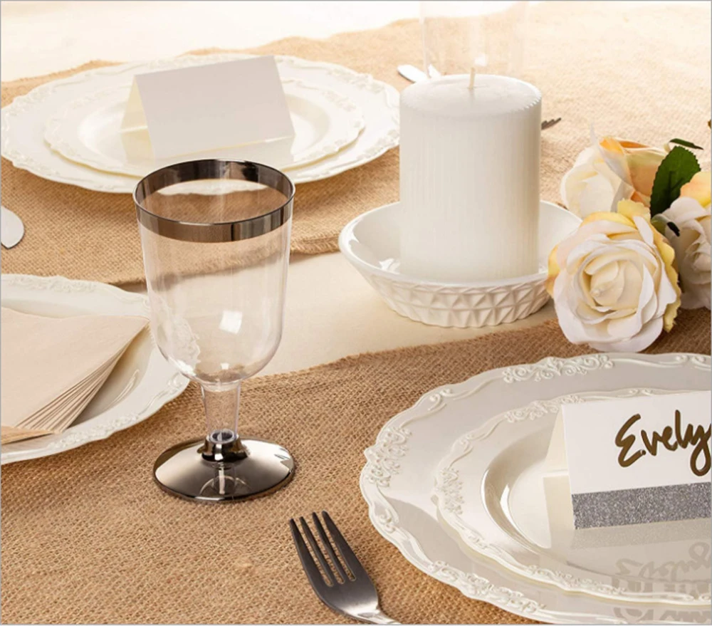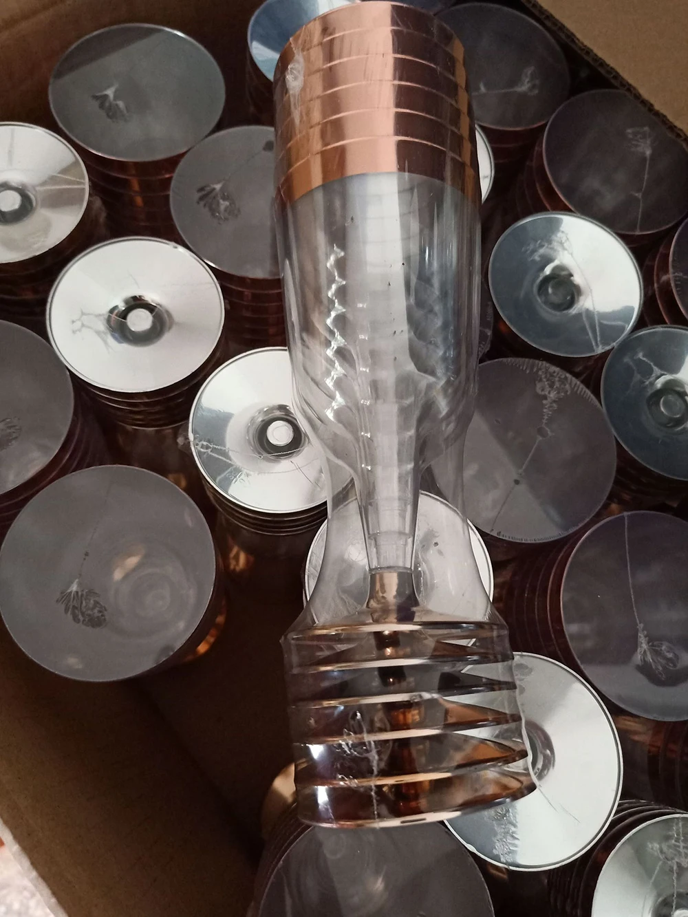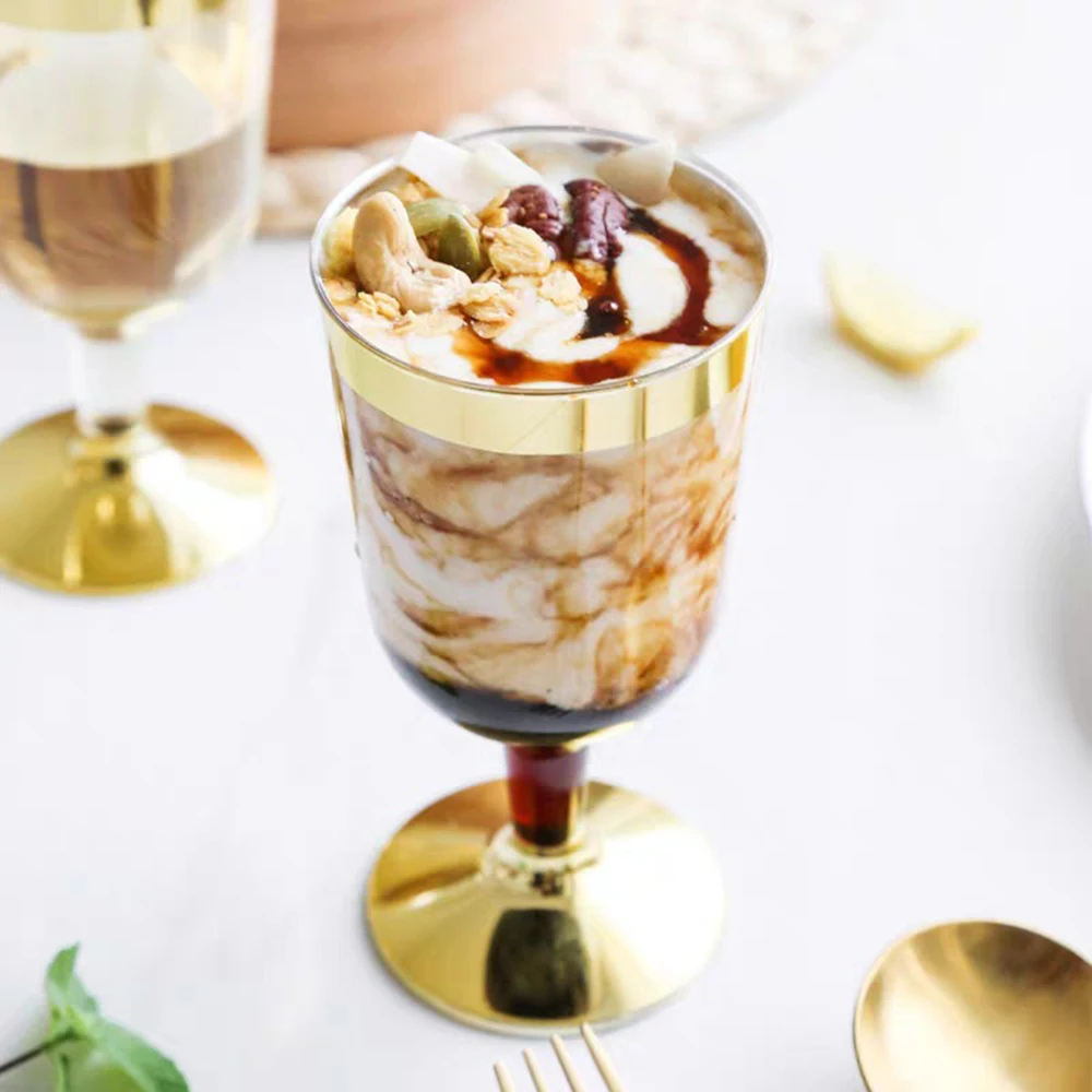 Стакан для красного вина цвета шампанского с золотой оправой, 6 шт., одноразовые чашки, пластиковые чашки для вечерние ринки, свадьбы, посуда, розовое золото, стакан для тостов, 180 мл