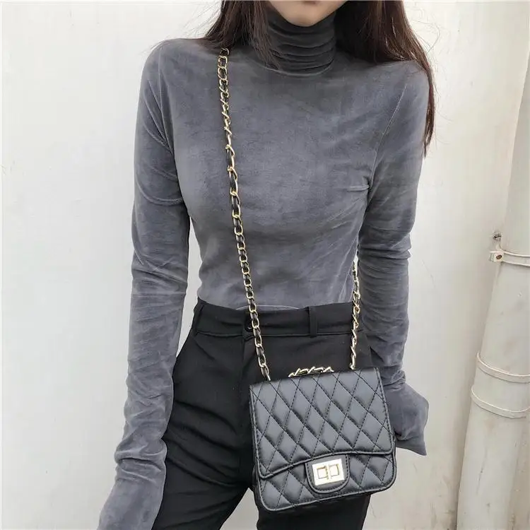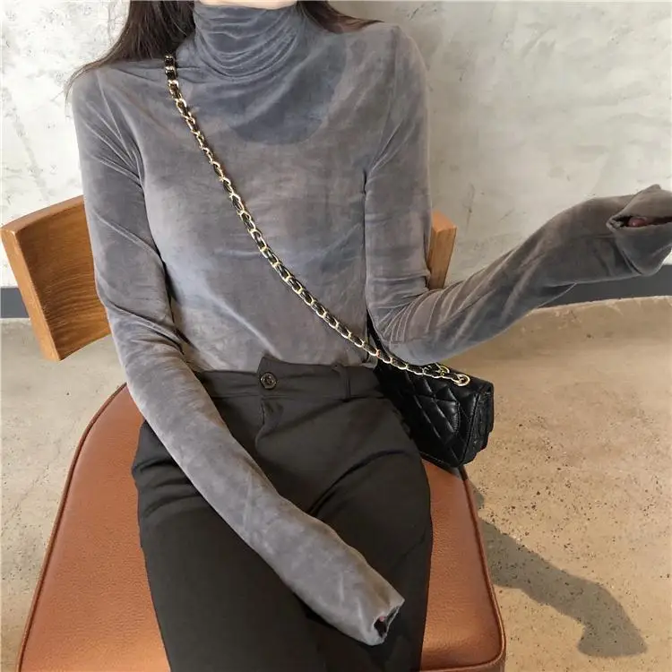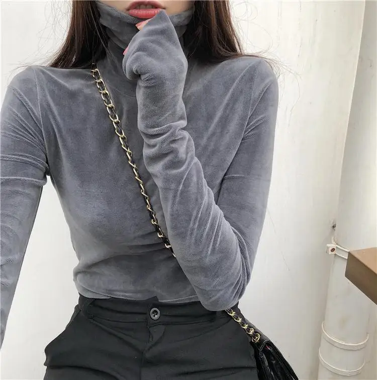 Женская бархатная водолазка, однотонный облегающий пуловер с длинным рукавом, Осень-зима 2021