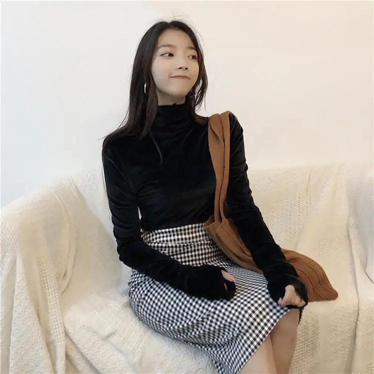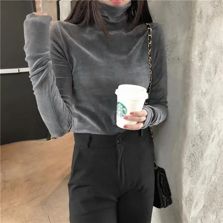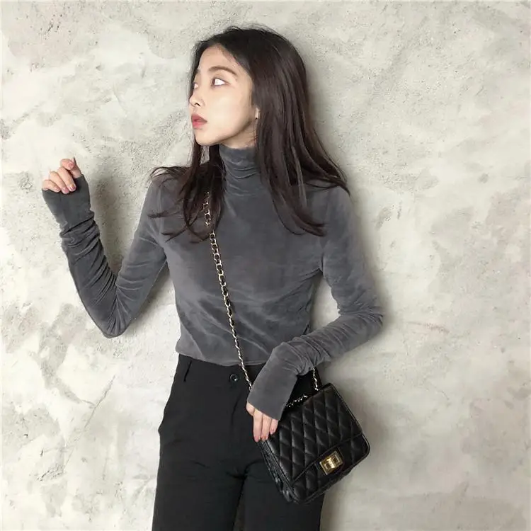 Женская бархатная водолазка, однотонная, с длинным рукавом, весна-о...