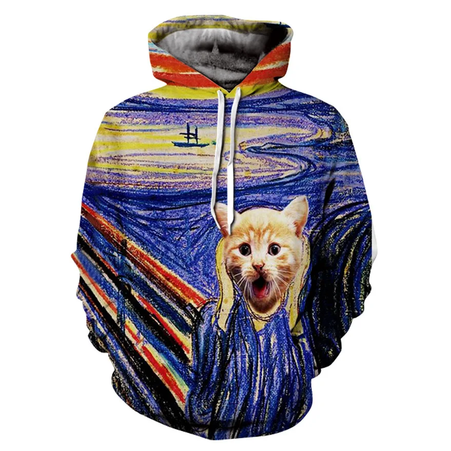 Новинка худи с рисунком кота Ван Гога 3d свитер МужскаяЖенская осенне-зимняя куртка с капюшоном забавная мужская Толстовка