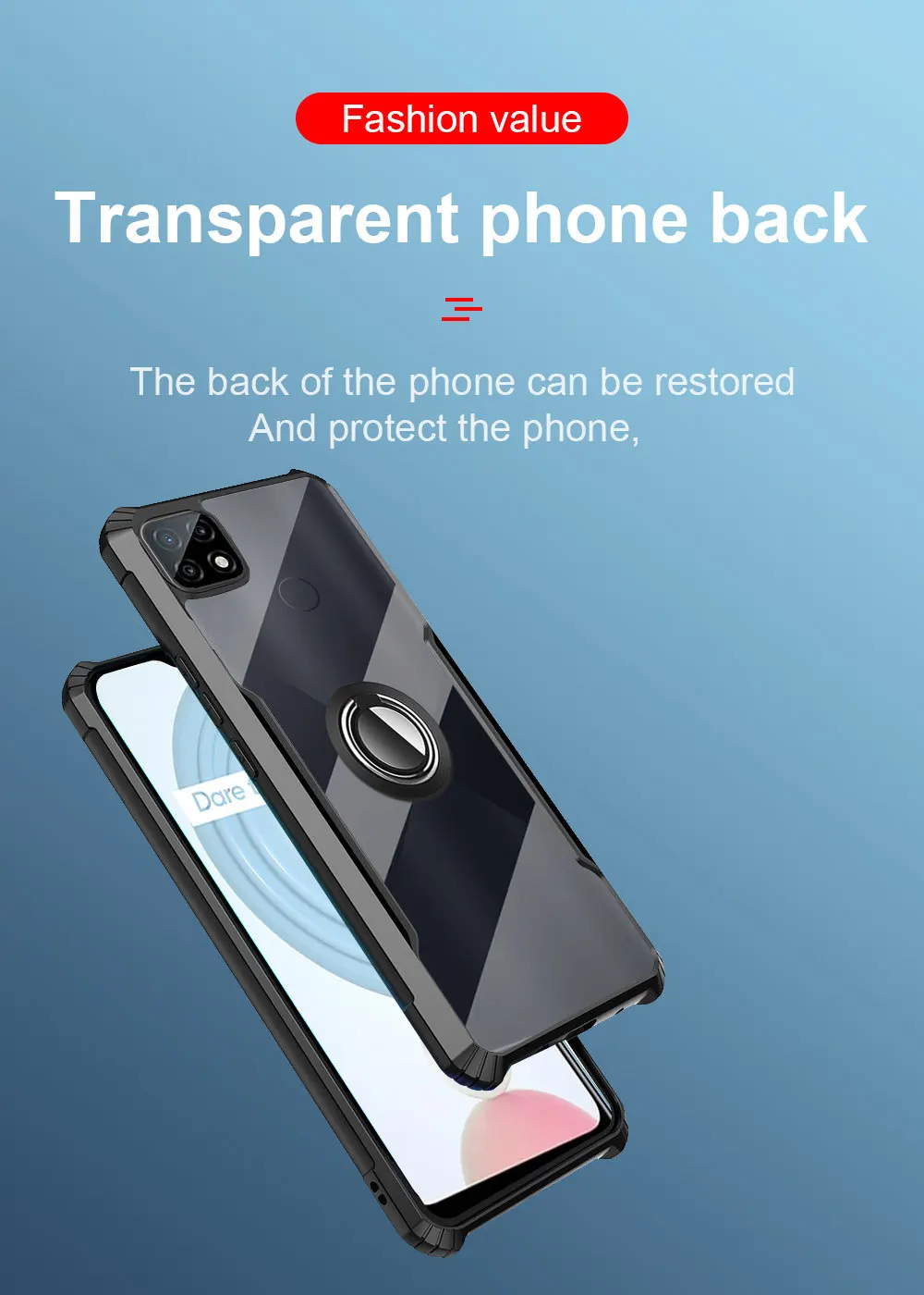 Акриловый защитный прозрачный чехол для Oppo Realme C21 C11 C20 2021 C15 C12 C3 C17 C 21 20 11 17 15 3 ударопрочный чехол с кольцом для камеры