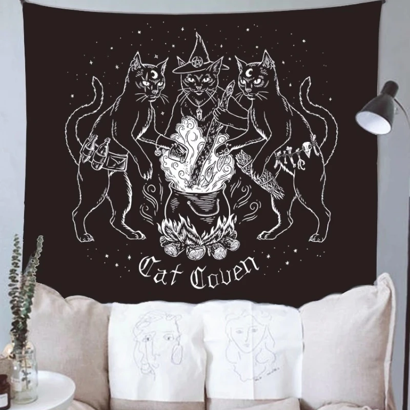 Таинственный котенок гадания ведьмастерская гобелен настенные гобелены Baphomet затемняющий домашний Настенный декор черный крутой декор кошка ковер
