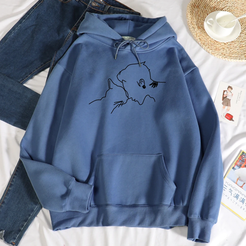 Толстовка Женская с милым котом и красивым принтом, уличный Повседневный свитшот, Свободные Теплые худи в стиле хип-хоп, флисовая уличная одежда унисекс, осень