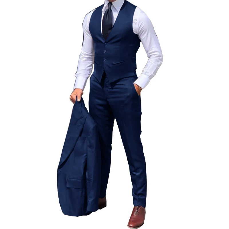 Мужской классический костюм из трех предметов, смокинг с заостренным воротником и жилетом коричневого цвета для свадьбы, мужской деловой костюм, пиджак + брюки + жилет, 2021