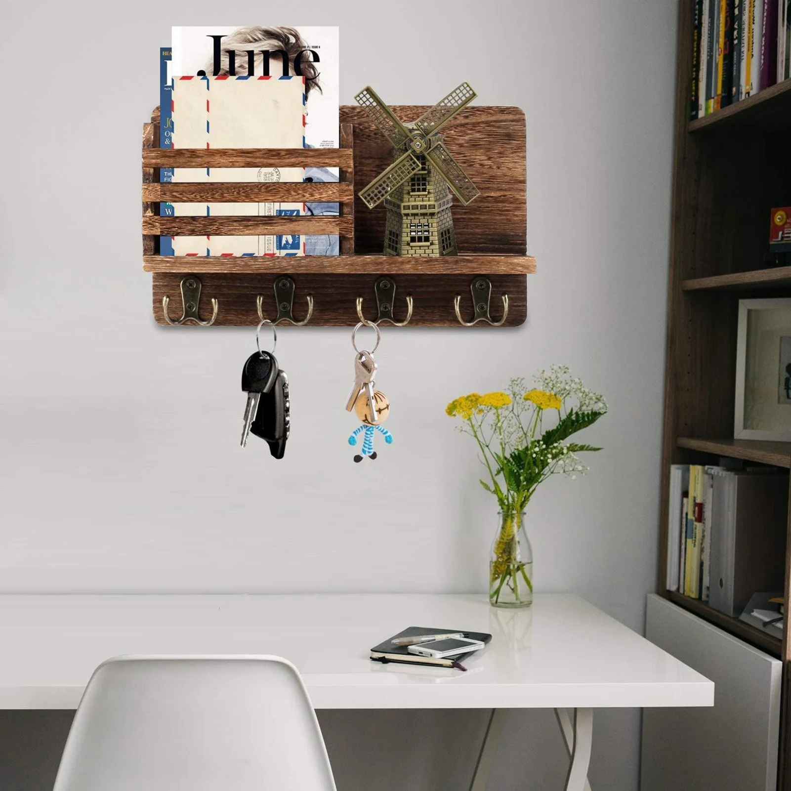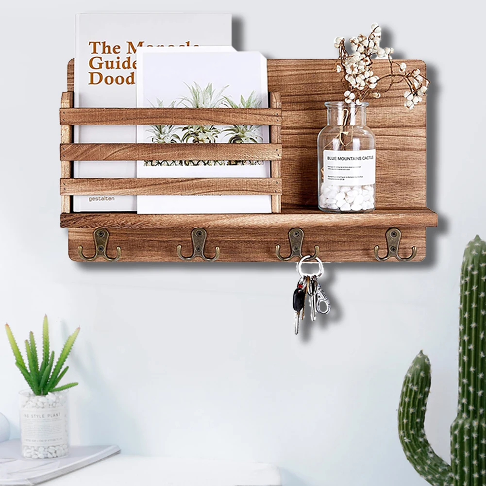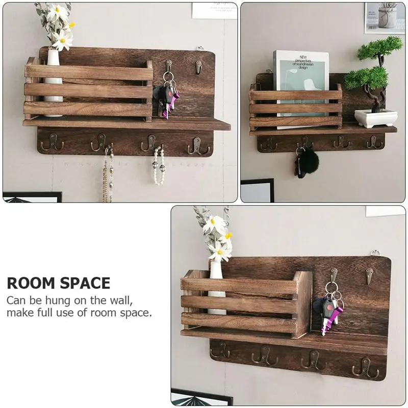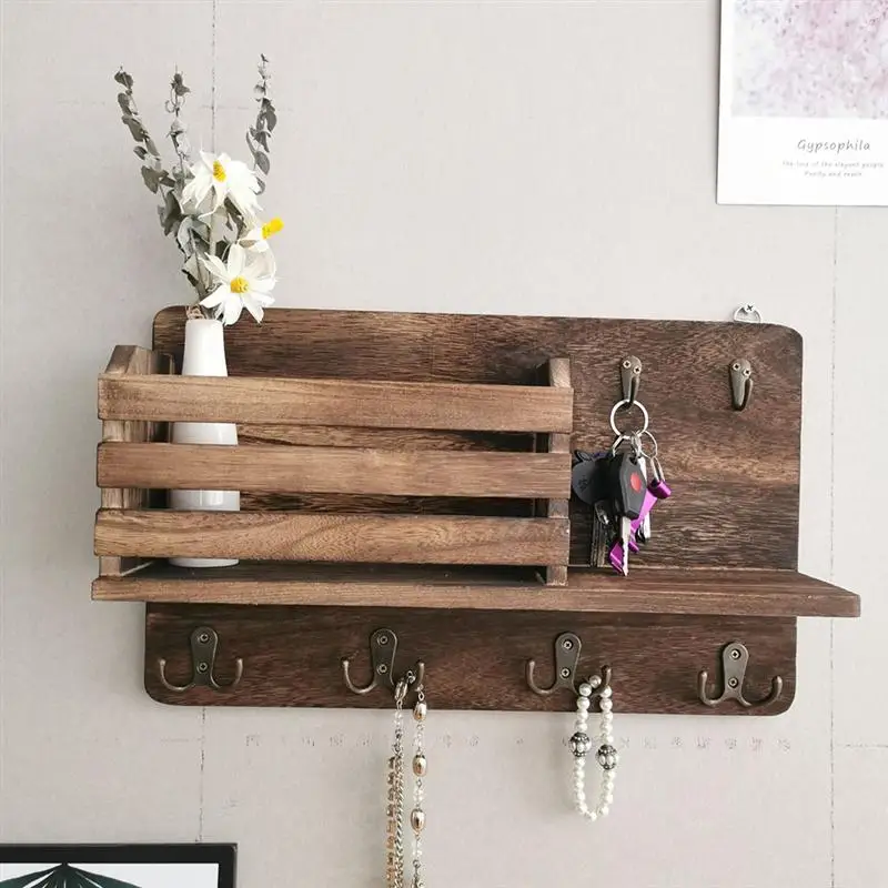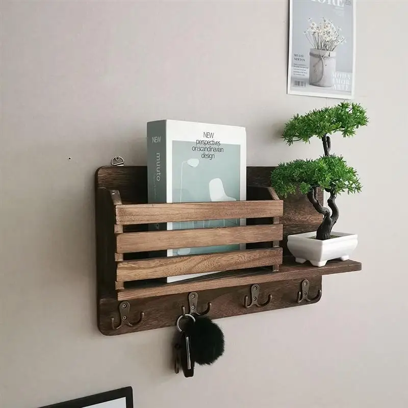 Скандинавская деревянная настенная полка, подвесной держатель для растений, настенное украшение, подвесная книжная полка с крючком для настенных ключей