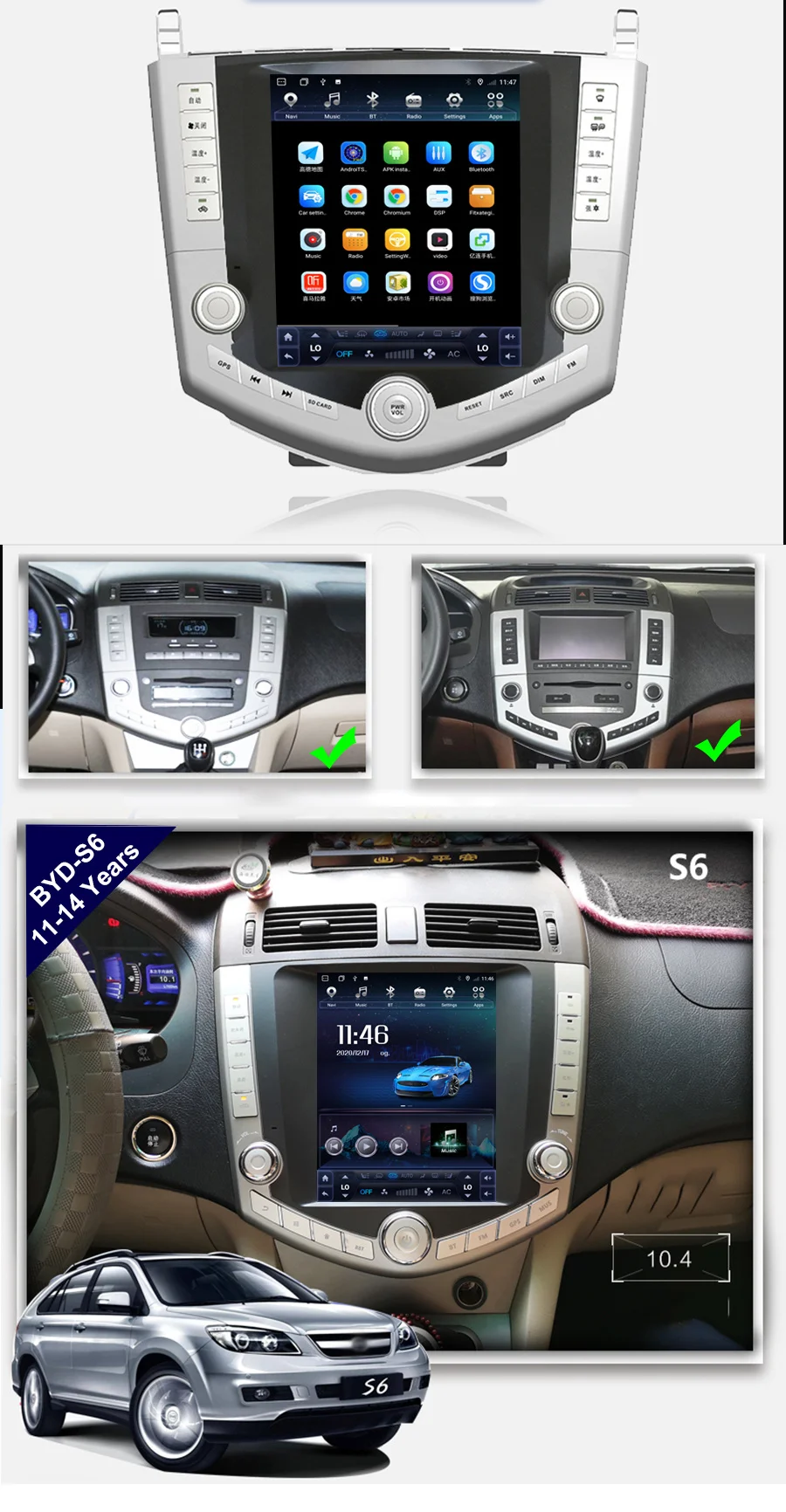 Автомобильный мультимедийный видеоплеер, экран 10,4 дюйма, для BYD S6, Android 10, GPS, магнитофон, радио, автомагнитола, 128 ГБ