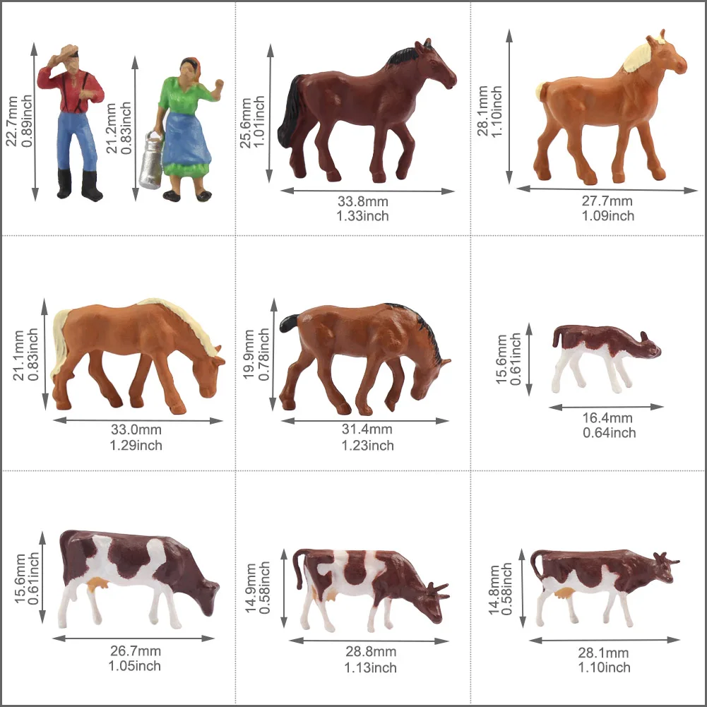 36 шт. модель поезда HO, масштаб 1:87, модель лошадей, коров, сельскохозяйственных животных с фигурками моделей