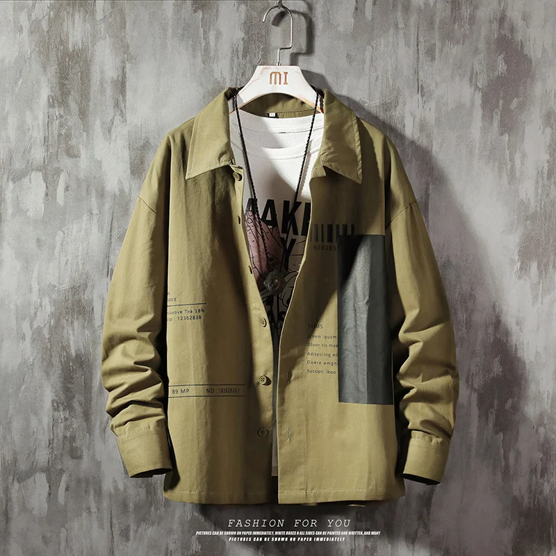 Мужская рубашка в стиле панк с длинным рукавом, свободная Японская уличная мода 2021, повседневные черно-зеленые рубашки в стиле хип-хоп, большие M-5XL